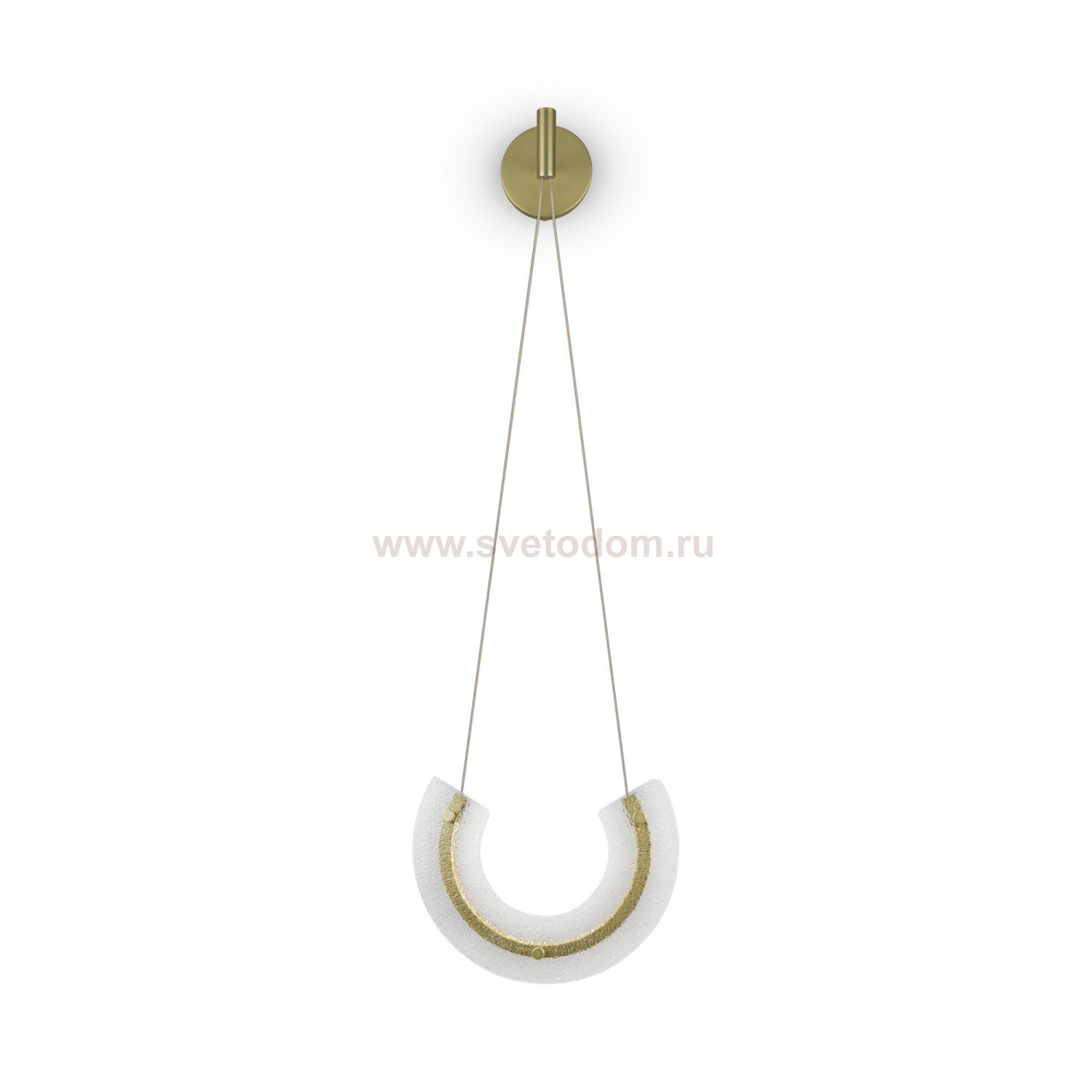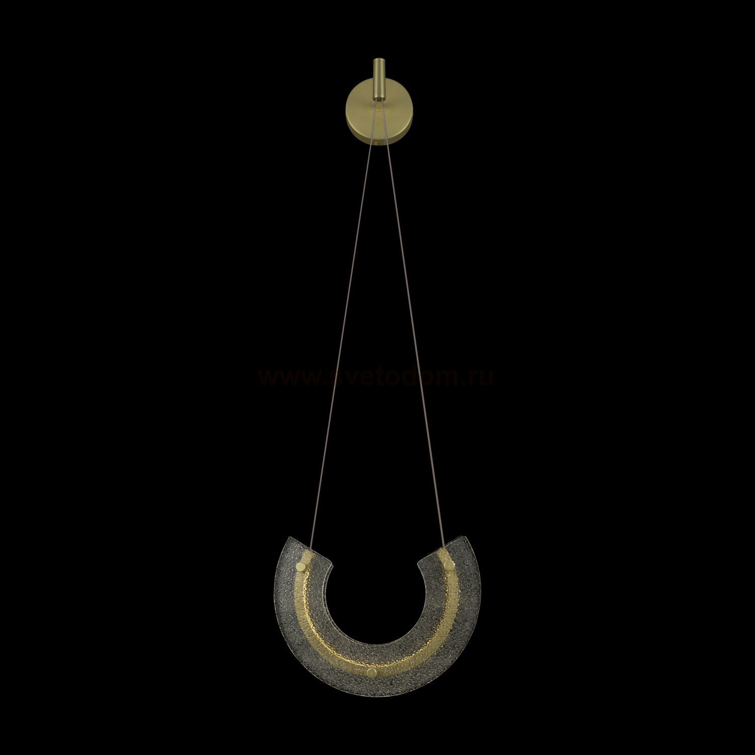 Металлическая арматура в золотом цвете. Декор — фактурное прозрачное стекло. Дизайн, вдохновленный ювелирным искусством Мезоамерики. LED-источник света. Цветовая температура 3000К.