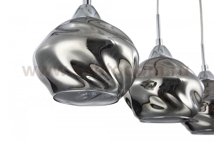 Каркас из металла. Плафоны из матового стекла дымчатого цвета. Подвески из *хрусталя. Комментарий