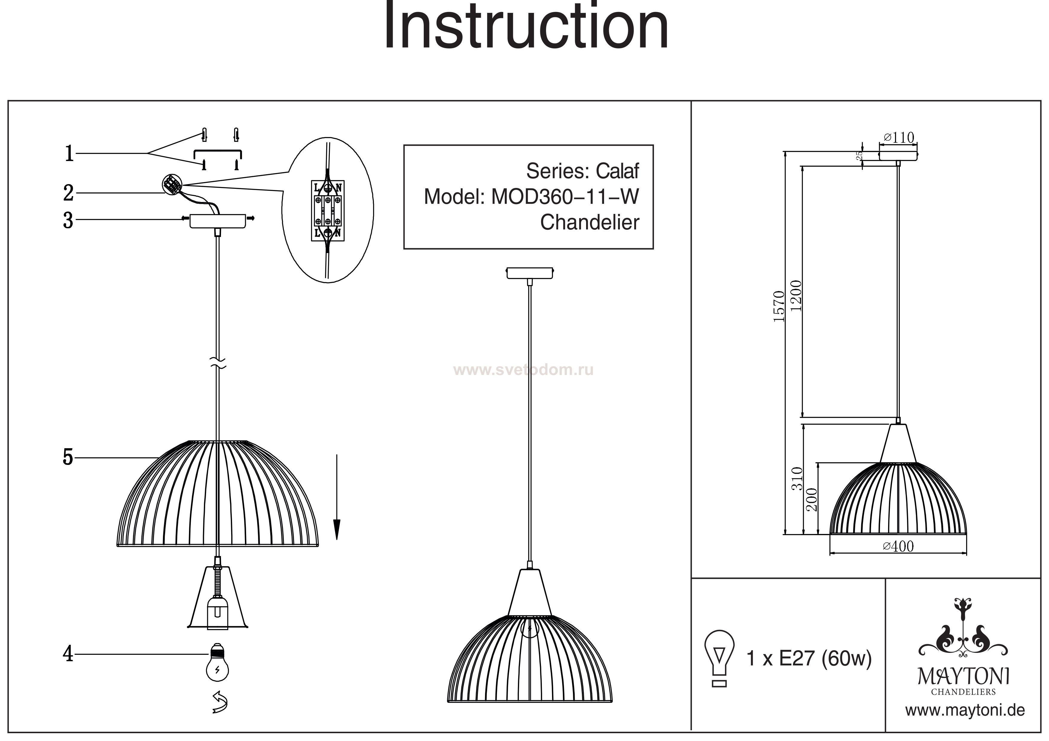 Подвесной светильник – это универсальный вариант, подходящий для любой комнаты. Сегодня производители предлагают огромный выбор таких моделей по самым разным ценам. В каталоге интернет-магазина «Светодом» мы собрали большое количество интересных и оригинальных светильников по выгодной стоимости. Вы можете приобрести их в Москве, Екатеринбурге и любом другом городе России. Подвесной светильник Maytoni P360-PL-400-W сразу же привлечет внимание Ваших гостей благодаря стильному исполнению. Благородный дизайн позволит использовать эту модель практически в любом интерьере. Она обеспечит достаточно света и при этом легко монтируется. Чтобы купить подвесной светильник Maytoni P360-PL-400-W, воспользуйтесь формой на нашем сайте или позвоните менеджерам интернет-магазина. |