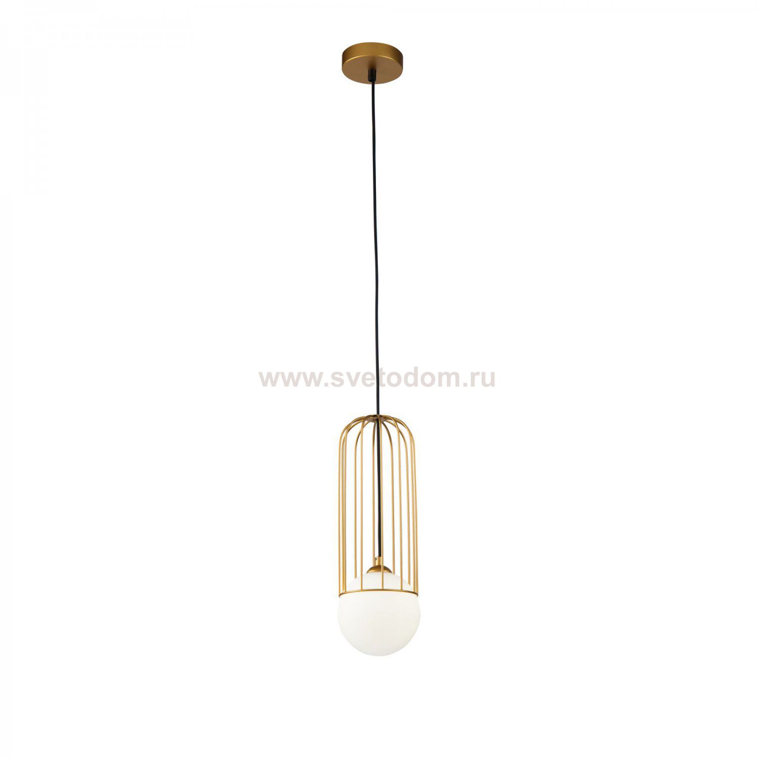 Арматура из металла в золотом цвете. Плафон из матового белого стекла. Декор плафона Telford — решетка из стальной проволоки в тон арматуре. Регулируемая высота.