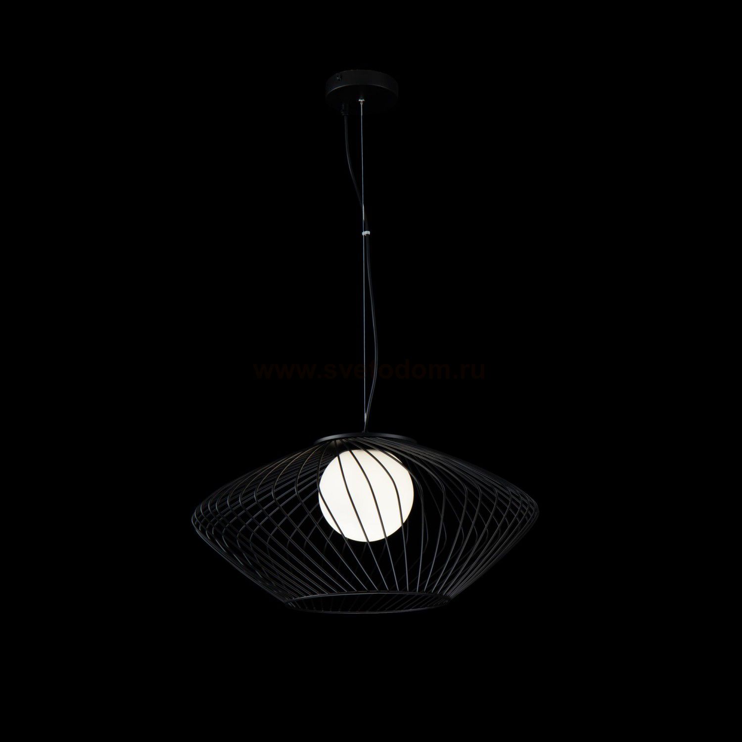 Каркас из металла. Плафон из двух элементов: сферы из белого матового стекла и абажура необычной формы из металла. Регулируемая длина светильников |