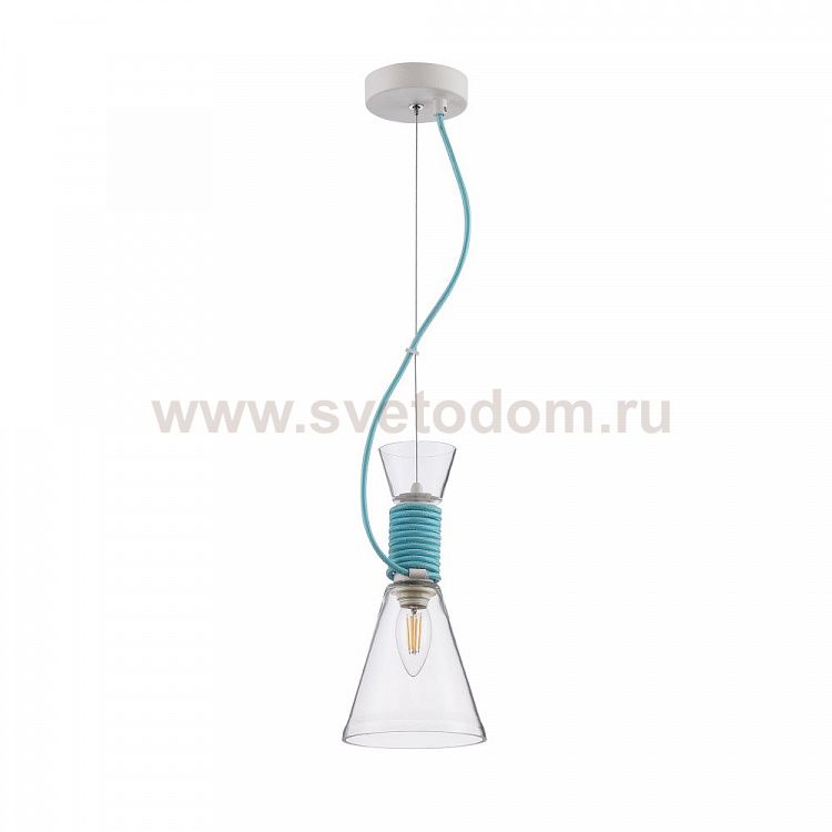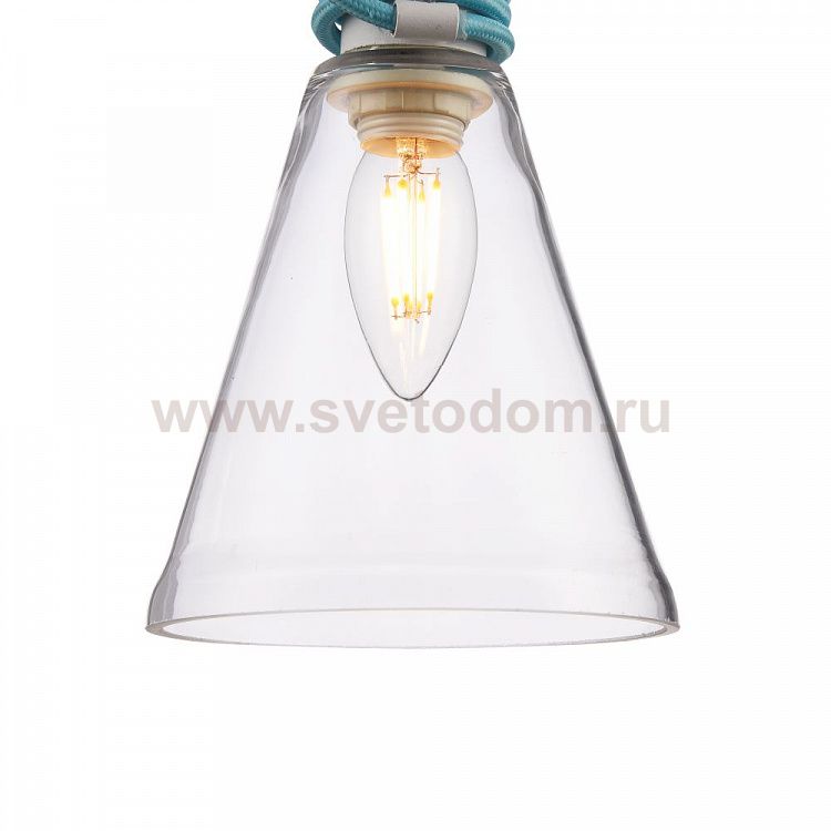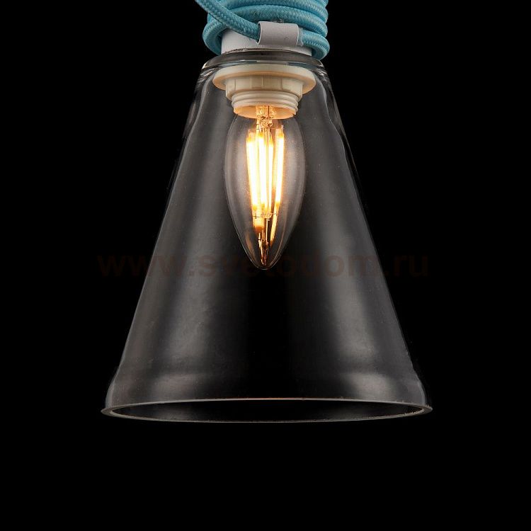 Каркас из металла дополнен цветными проводами. Плафон из прозрачного стекла. Дополнительно