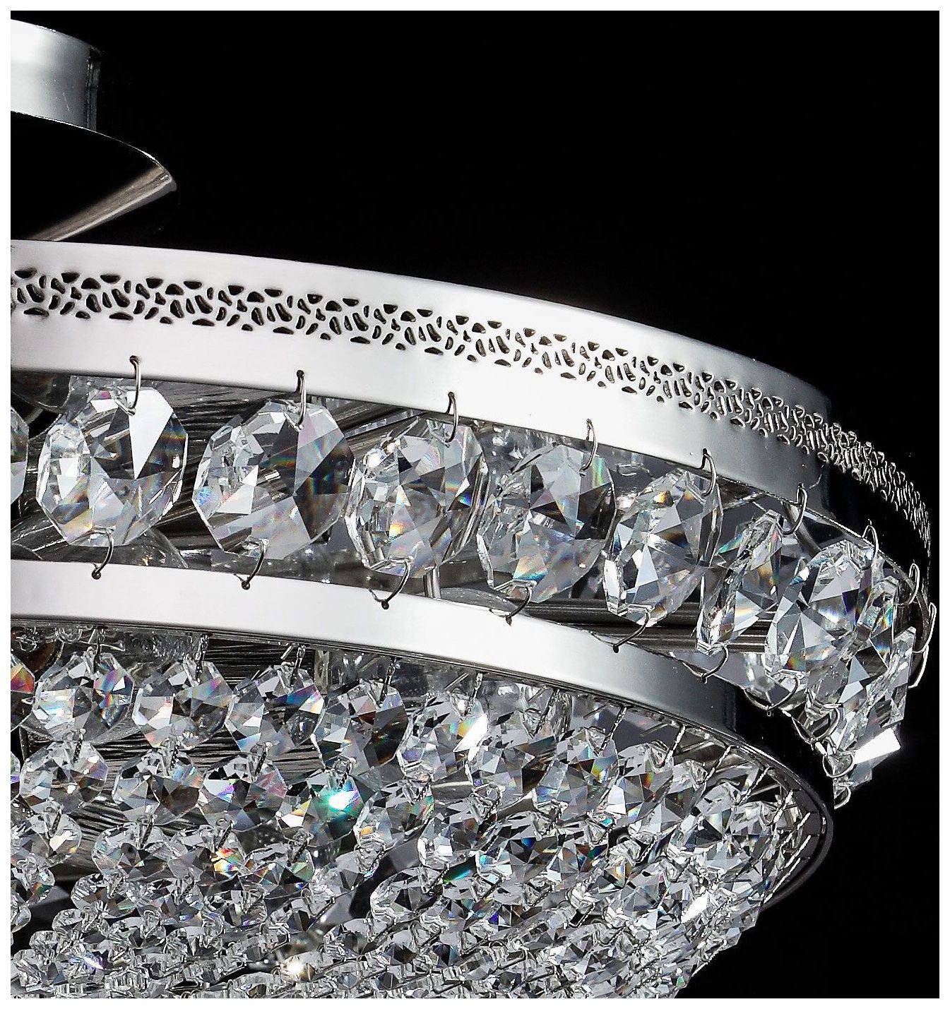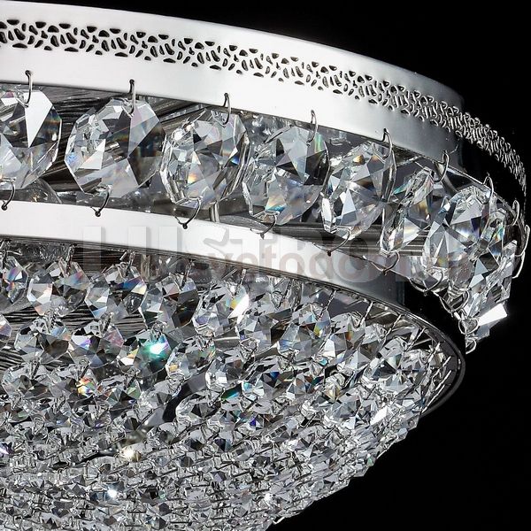 Компания Maytoni представляет вам роскошную хрустальную потолочную люстру по доступной цене. Ее размер составляет 260 миллиметров в высоту и 435 миллиметров в диаметре. В этой люстре можно использовать лампы накаливания с цоколем E14 мощностью 60 Ватт. Хрустальная потолочная люстра Maytoni P700-PT45-N прекрасно подойдет в гостиную, обставленную в стиле Барокко. Каркас её выполнен из никелированного металла и скрывает за собой крючок, с помощью которого лампа крепится к потолку. Основную видимую часть составляет изюминка коллекции Diamant – хрустальные подвески, придающие прибору объем и насыщающие проходящий через них свет. Их вы можете разглядеть на фото. Стоимость приборов из данной коллекции относительно невысока, поэтому вы можете купить сразу несколько светильников и укомплектовать свой интерьер за приемлемую цену. |