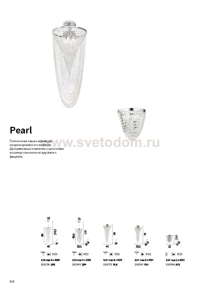 Светильник бра от известной итальянской фабрики Ideal lux из каталога Classico в классическом стиле под артикулом PEARL AP2 (211596) серии PEARL имеет ряд отличительных характеристик: Потолочная чаша и арматура из хромированного металла. Декоративные элементы с цепочками восьмиугольников из хрусталя с фацетом.