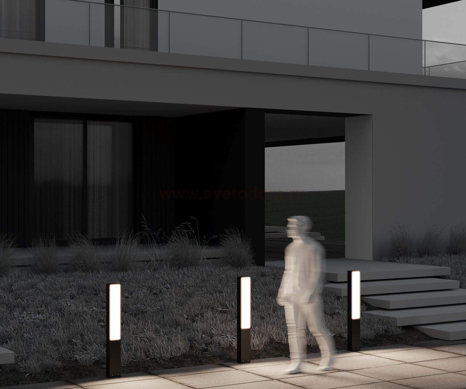 Материал арматуры — алюминий, цвет — графит. Рассеиватель из белого матового акрила — мягко рассеивает свет. Два размера — 1000 мм и 2500 мм. Мощность 20Вт и 40Вт для высокого светильника. LED-источник света. Цветовая температура 3000К. Защита корпуса от пыли и влаги — IP65. Подходят для основного освещения экстерьера.