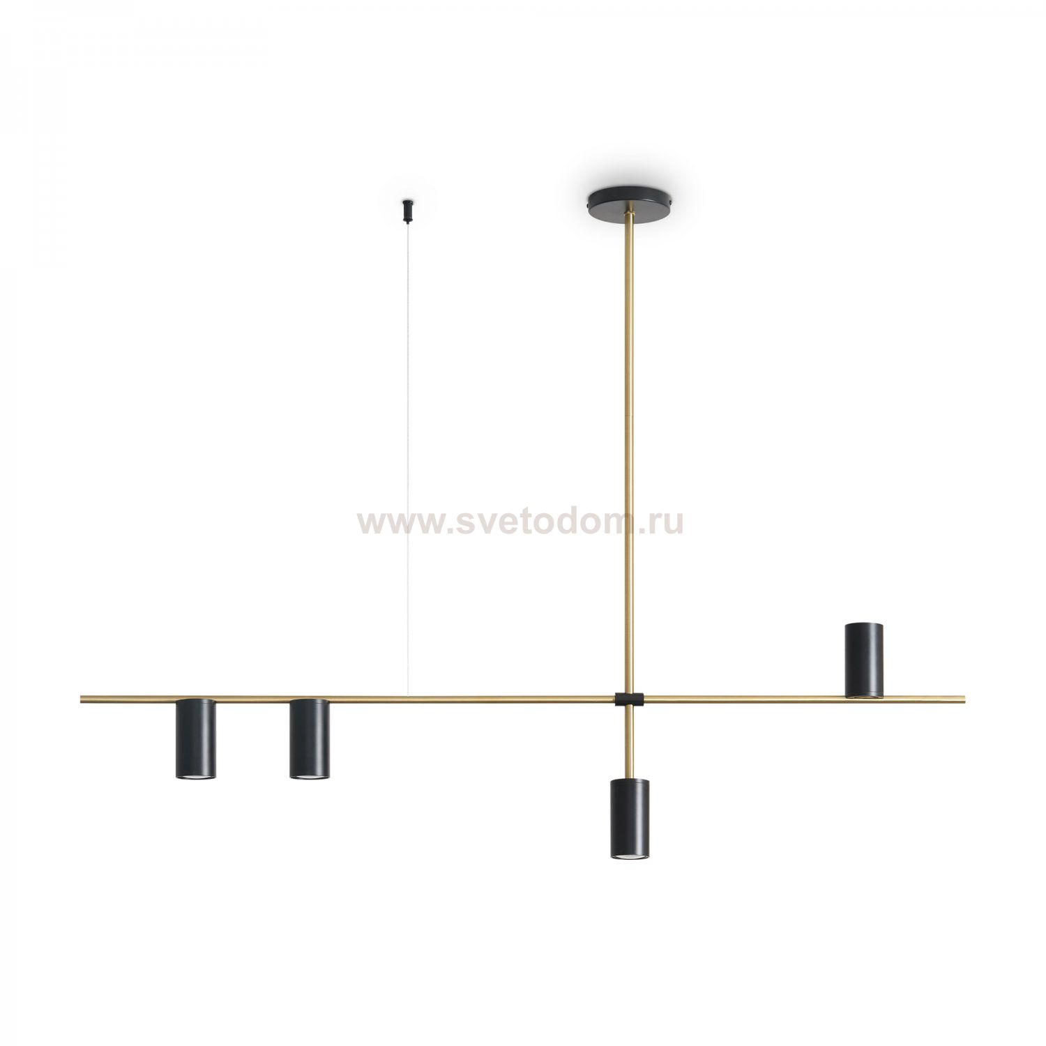 Арматура и плафоны из металла. Черный цвет дополнен латунной окантовкой. Поворотные плафоны и арматура позволяют видоизменять композицию и регулировать направление светового потока. Источник света – лампа GU10.