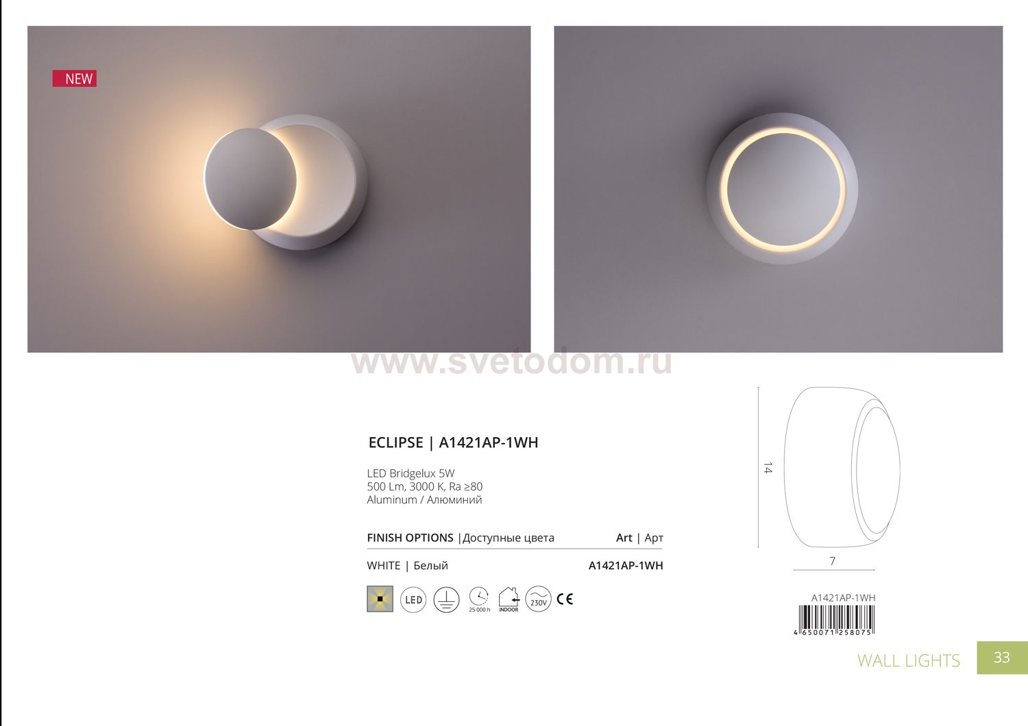 Светильник настенный диодный A1421AP-1WH Arte lamp сделает Ваш интерьер современным, стильным и запоминающимся! Наиболее функционально и эстетически привлекательно модель будет смотреться в гостиной, зале, холле или другой комнате. А в комплекте с люстрой и торшером из этой же коллекции сделает интерьер по-дизайнерски профессиональным и законченным.