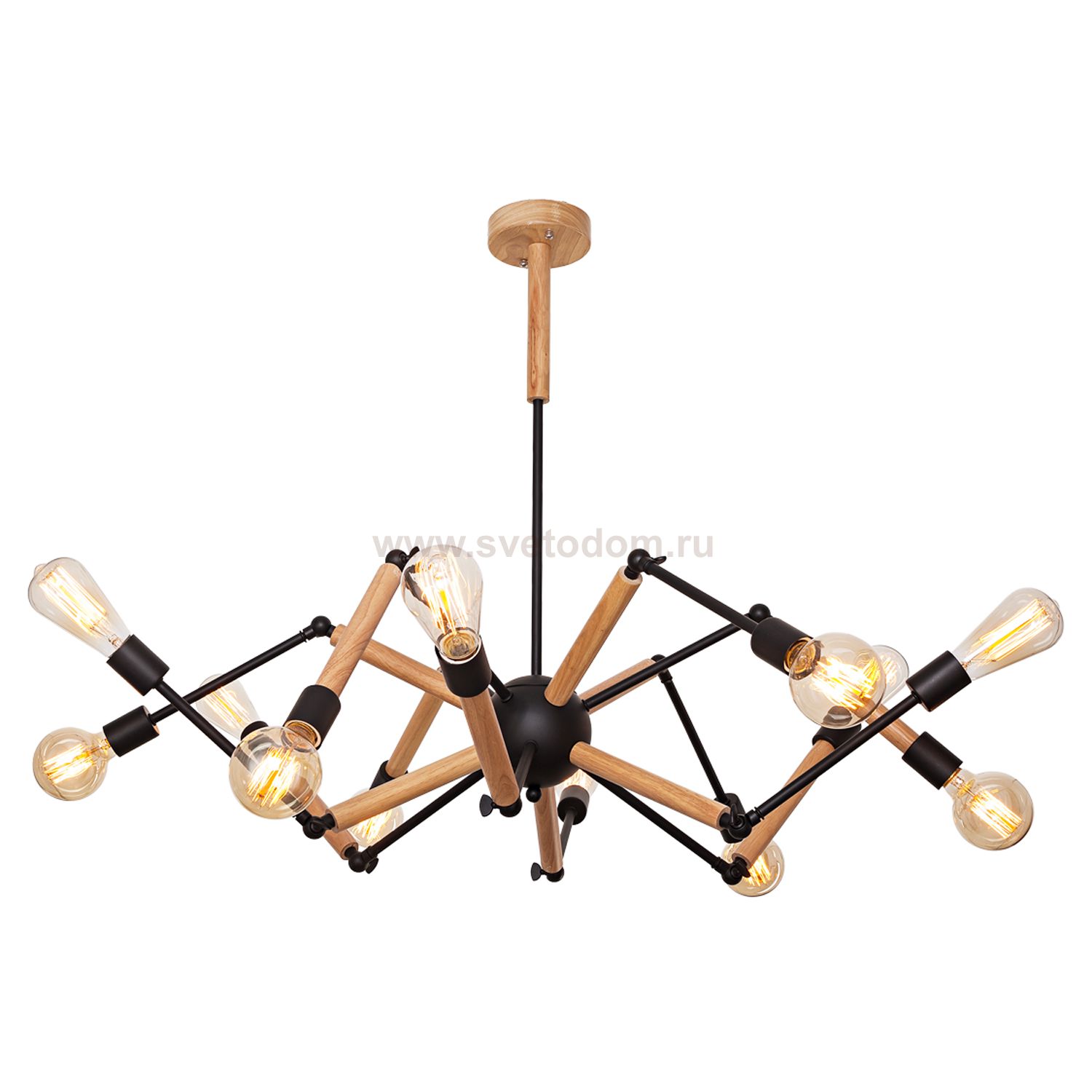Потолочная люстра G71115/12BK+WL от бренда Gerhort. Каркас выполнен из материалов дерево и металл; цвета: черный и светлое дерево. Цоколь E27 рассчитан на лампы максимальной мощности до 40 Вт, а максимальная площадь освещения составит до 27 м?.