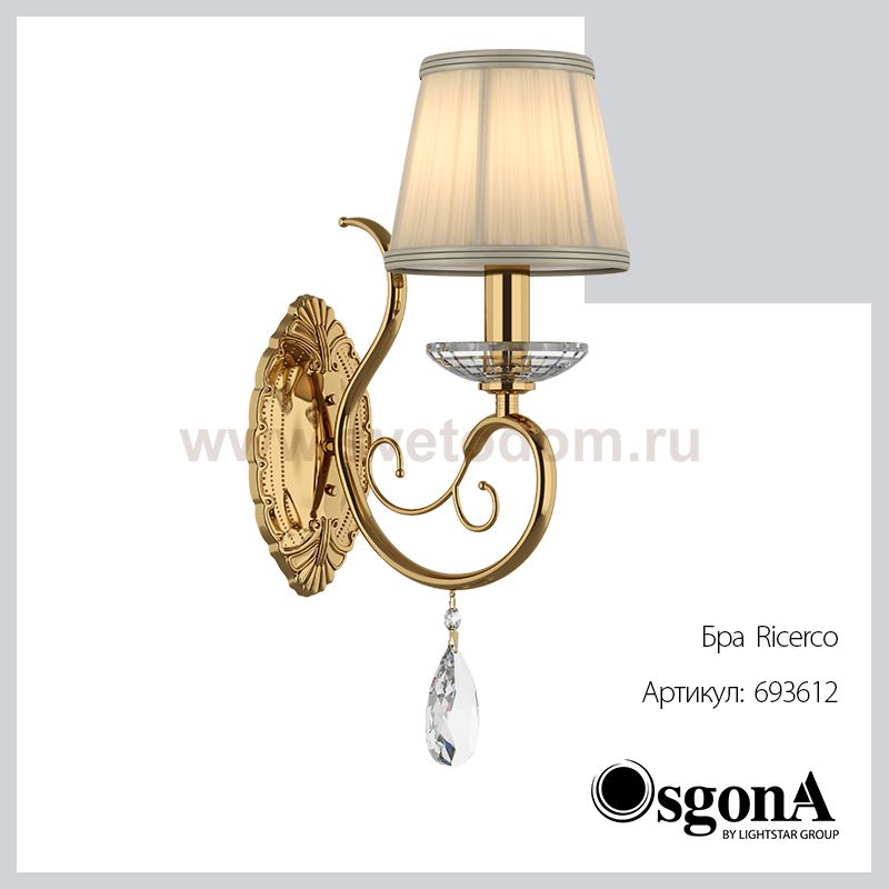 Бра из коллекции Ricerco от Osgona это гармоничная неоклассика. В минимуме деталей сосредоточено искусство соблюдения баланса роскоши и лаконичности. Аккуратный плафон, простой завиток рожка и хрустальная капелька подобраны с чувством строгого вкуса, чтобы сделать свет главным украшением Ricerco.