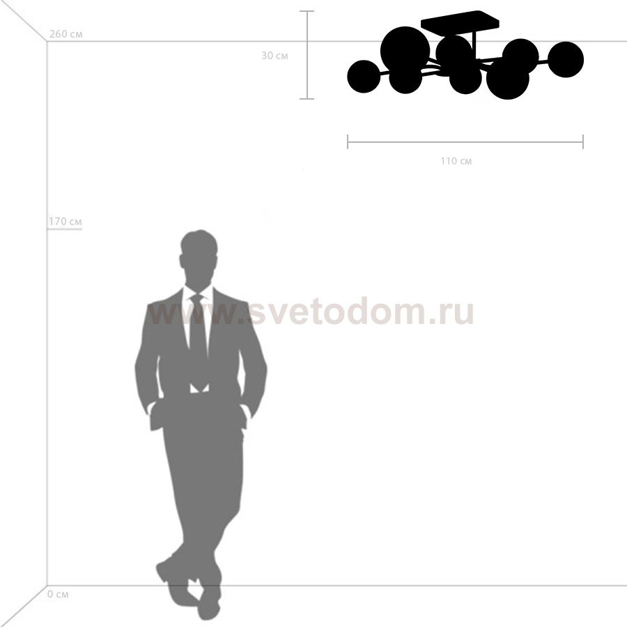 Высота min-max (см): 30; Ширина (см): 110*90; Вес (кг): 5,7; Кол-во ламп: 8хЕ14; Мощность max (W): 40; Цвет основания/цвет стекла или абажура: Matt Black/Gold; Штрих-код
