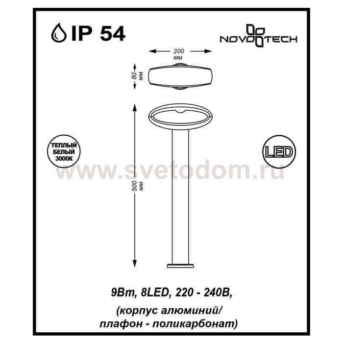 корпус - алюминий / плафон - поликарбонат Материал плафона