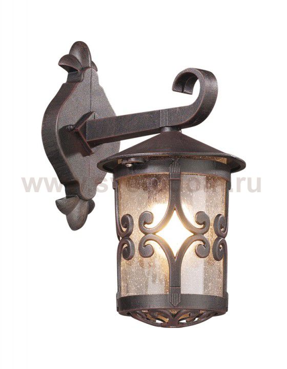 Уличный настенный светильник 2311/1W линии Bukle выполнен в стиле модерн. Цвет покрытия металла: темно-коричневый. Плафон состоит из полупрозрачного стекла с эффектом капель дождя, снаружи украшенный декоративной решеткой. Имеется степень защиты IP44. Цоколь E27. Мощность 1*60W. Нет ламп в комплекте.