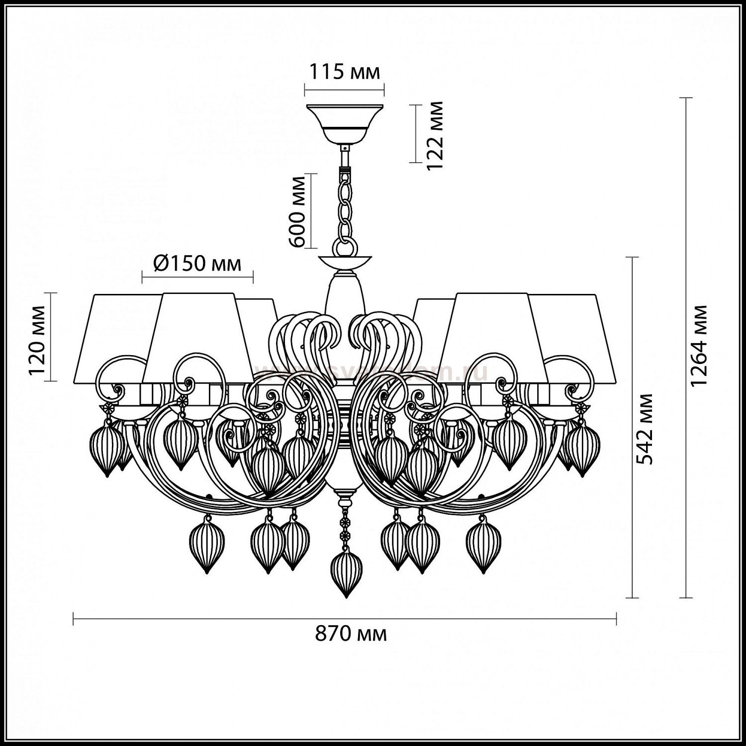 Арматура, декор: металл, стекло, хрусталь; абажур: ткань Материал плафона