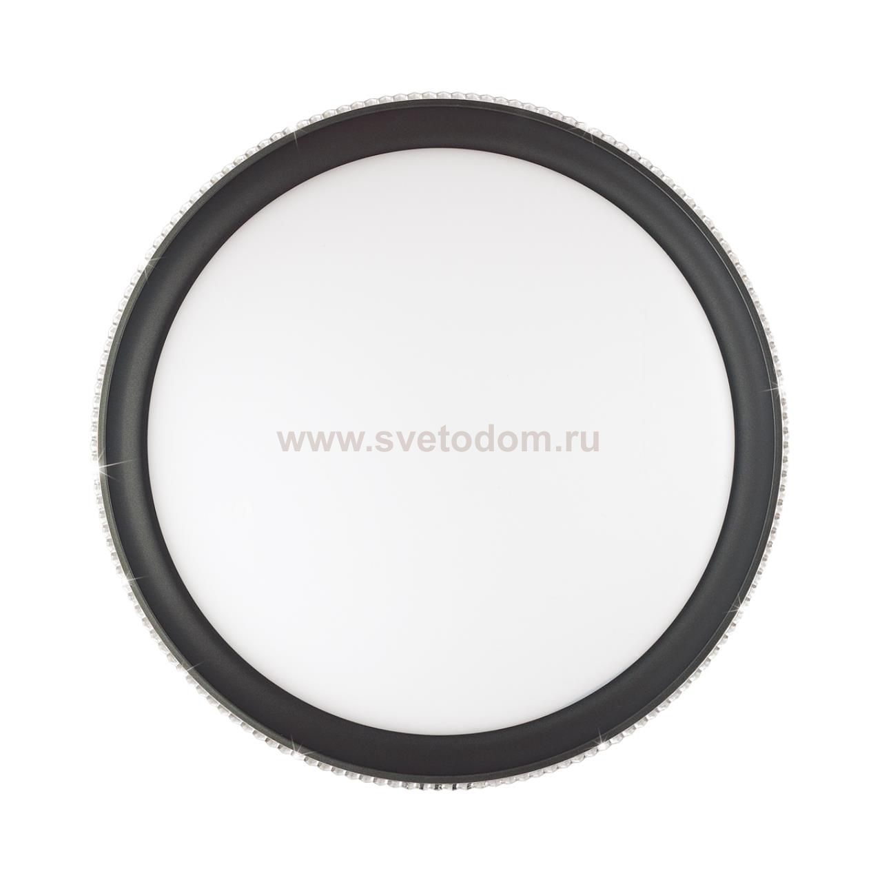 Светильник 3049/DL линии SHINY состоит из металлического основания (базы) и пластикового рассеивателя. Материал рассеивателя - качественный пластик белого цвета с матовой поверхностью, обеспечивающий светильнику равномерное рассеивание и хорошее светопропускание. Форма плафона: круглая, декорирована ободом под хрусталь черного цвета. Степень защиты IP43 позволяет использовать светильник в определенных зонах влажных помещений. В комплект входит заменяемый LED модуль с линзами, мощностью 48Вт, которая соответствует лампе накаливания 350Вт. А также пульт ДУ, с помощью которого осуществляется плавное изменение цветовой температуры 3000-6000К, изменение яркости, переход в режим переключения теплого/белого/холодного/ночного света. Светильник имеет функцию "память".