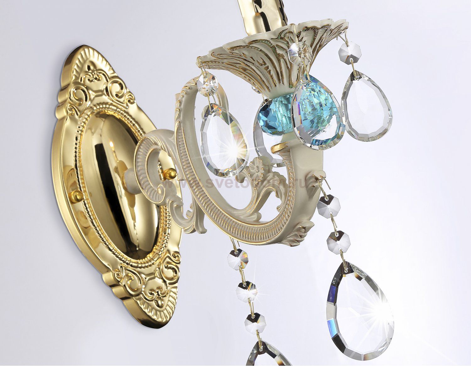 Настенный светильник из коллекции TRADITIONAL. Модель TR4932 представлена в классическом стиле и выполнена из прозрачного хрусталя и металлического корпуса белого и золотого цвета. Для данной модели подойдут лампы с цоколем Е14. Светильник будет прекрасным дополнением в любом помещении.