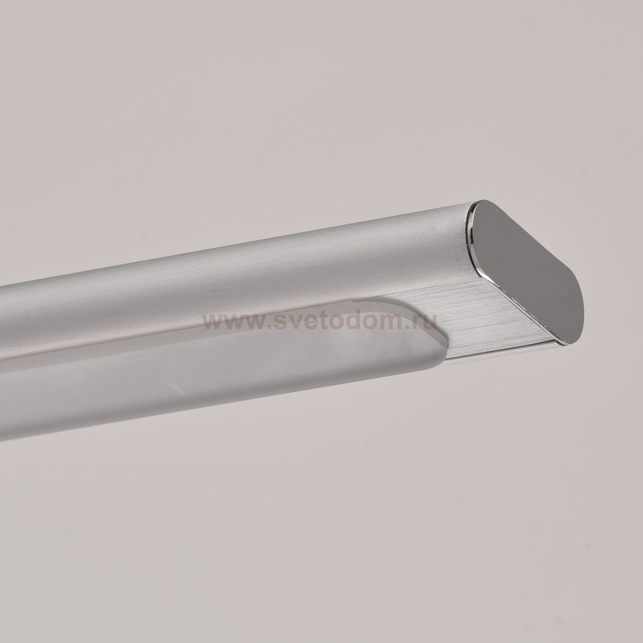 Основание выполнено из нержавеющей стали. Плафон выполнен из сплава аллюминия, источники света типа SMD Strip закрыты белым матовым акрилом. Подвес - металлические троссы. Комментарий