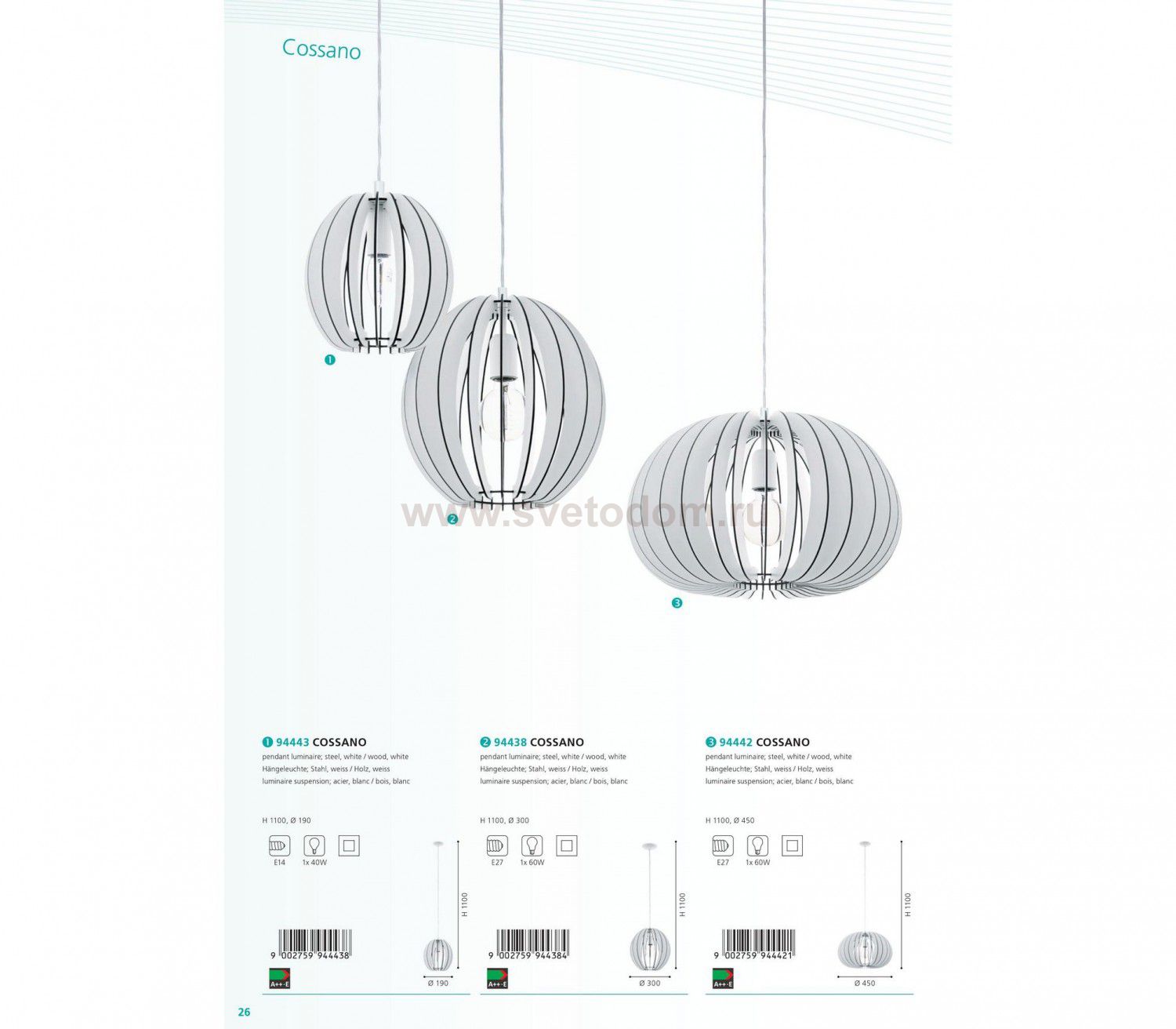 43 Отзывы Светильник подвесной из ламелей 450мм Eglo 94442 COSSANOПока нет отзывов об этом товаре, напишите и он обязательно появится после модерации! Оставить свой отзывПохожие товары Другие товары магазина Фото