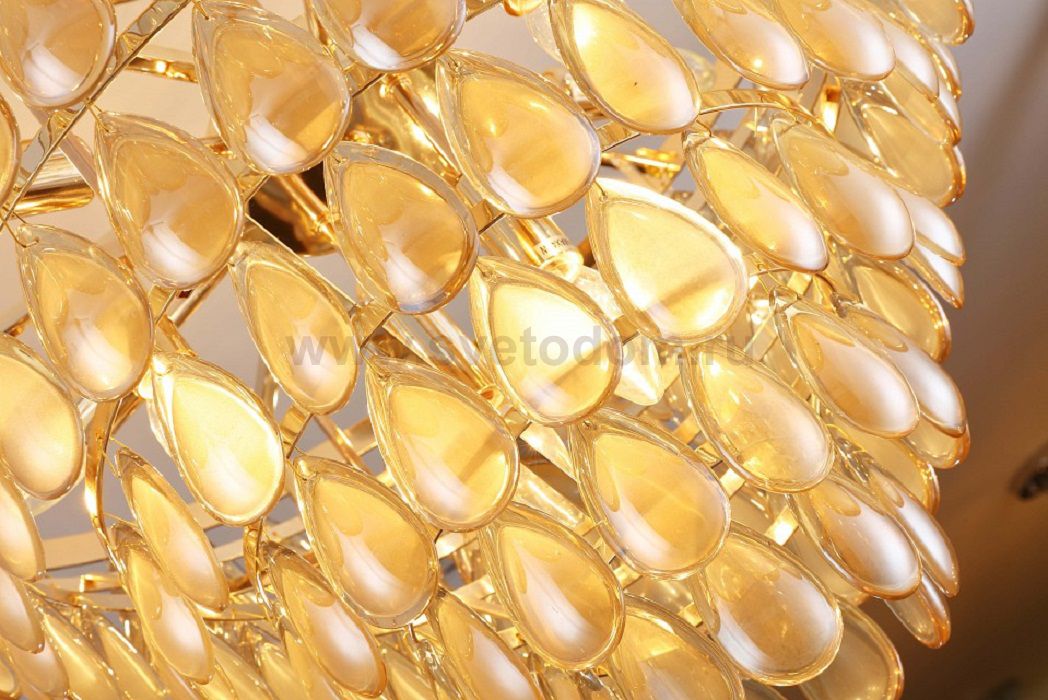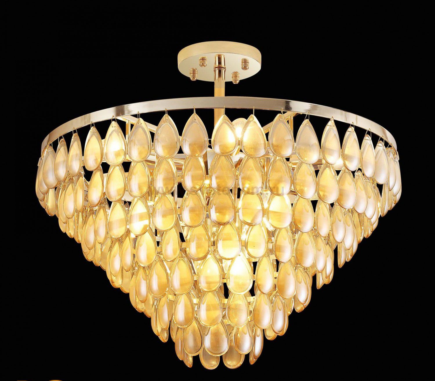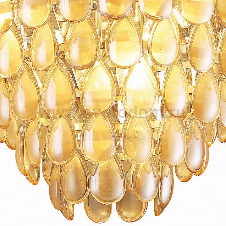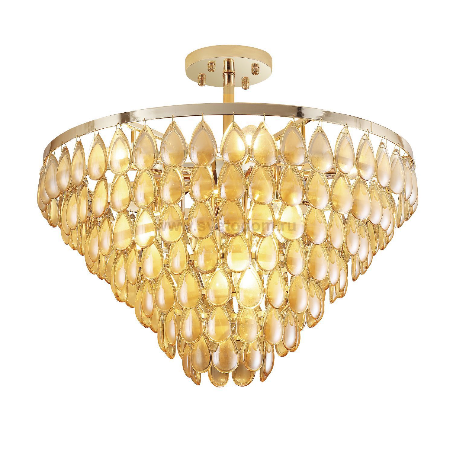 каркас покрыт золотой гальваникой, стеклянные подвески коньячного цвета Комментарий