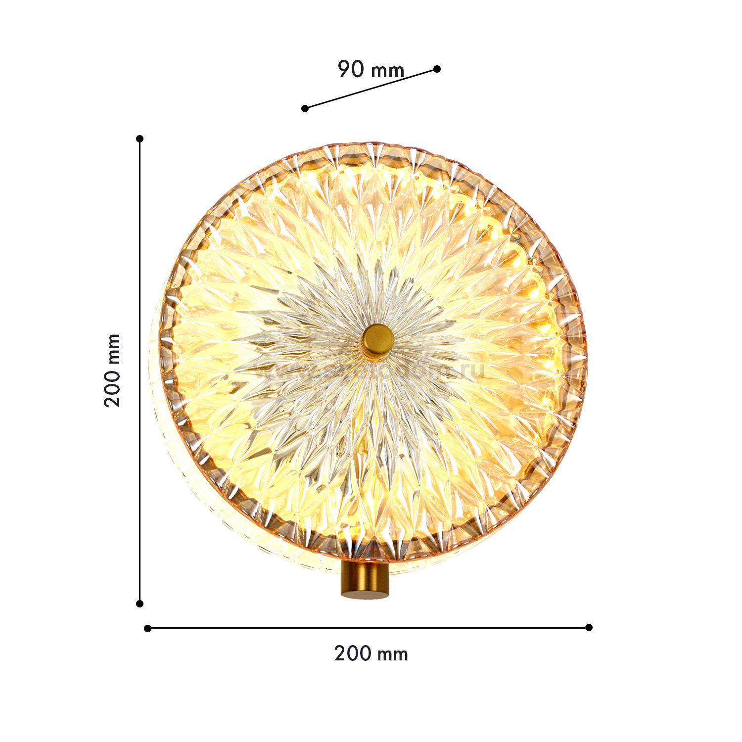 Настенный светильник с черным каркасом диаметром 9 см, состоит из двух узорных стеклянных дисков прозрачного и янтарного цвета, внутри которых располо Серия