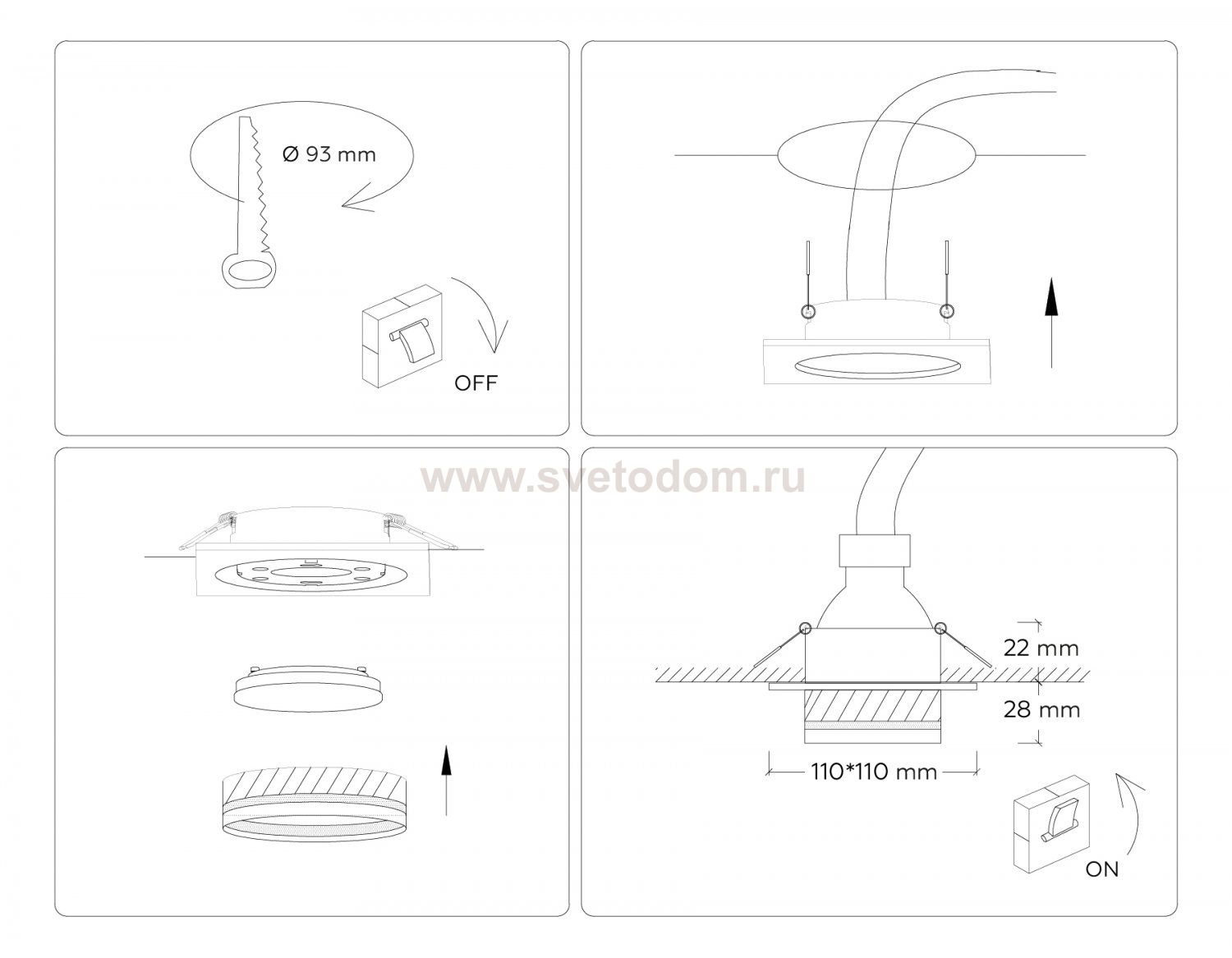 Данный размер указывает какое отверстие необходимо сделать для правильного монтажа. Зачастую светильники выбирают после ремонта и сделанных монтажных отверстий, тогда подбор осуществляется строго в размер +/- 2-5мм.