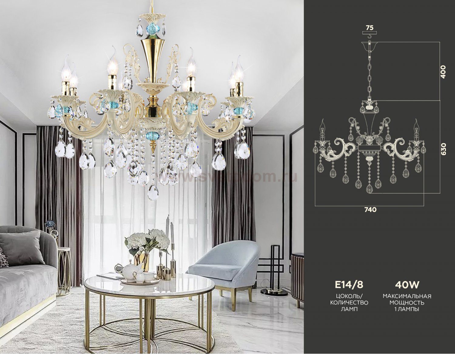 ![]() Люстра на штанге со стеклянными плафонами Ambrella TR303043/8 WH белый E27/8 max 60W 820*820*260 10470 руб.