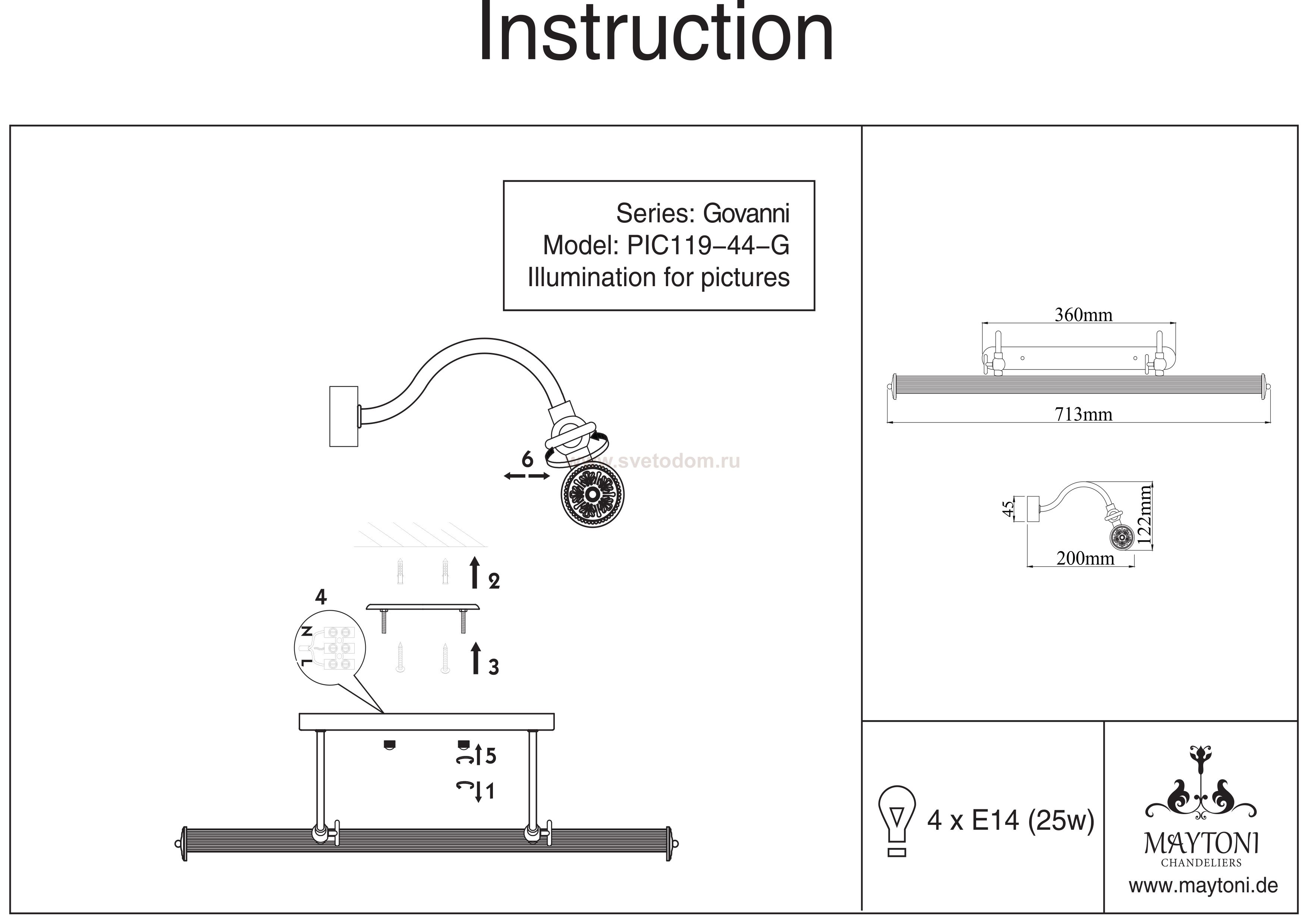 100 Отзывы Подсветка Maytoni PIC119-44-G Picture Govanni GovanniПока нет отзывов об этом товаре, напишите и он обязательно появится после модерации! Оставить свой отзывПохожие товары Другие товары магазина Фото