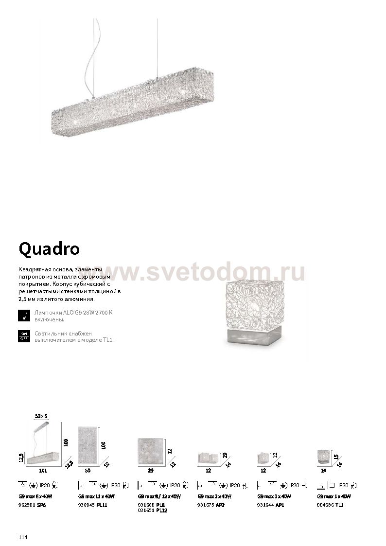 Настольная лампа – это не просто источник дополнительного освещения, но и оригинальный элемент декора. Его можно установить в спальне, гостиной, кабинете и других комнатах. Интернет-магазин «Светодом» предлагает настольные лампы разных стилей по доступным ценам. Благодаря большому ассортименту Вы обязательно найдете в нашем каталоге именно ту модель, которую искали. Настольная лампа Ideal lux QUADRO TL1 – прекрасный вариант для завершения интерьера. Ее можно включить одновременно с люстрой для более яркого освещения или без нее для создания уютной атмосферы, настраивающей на отдых. Купить настольную лампу Ideal lux QUADRO TL1 Вы можете с помощью виртуальной «Корзины» или по контактным номерам, указанным на сайте.