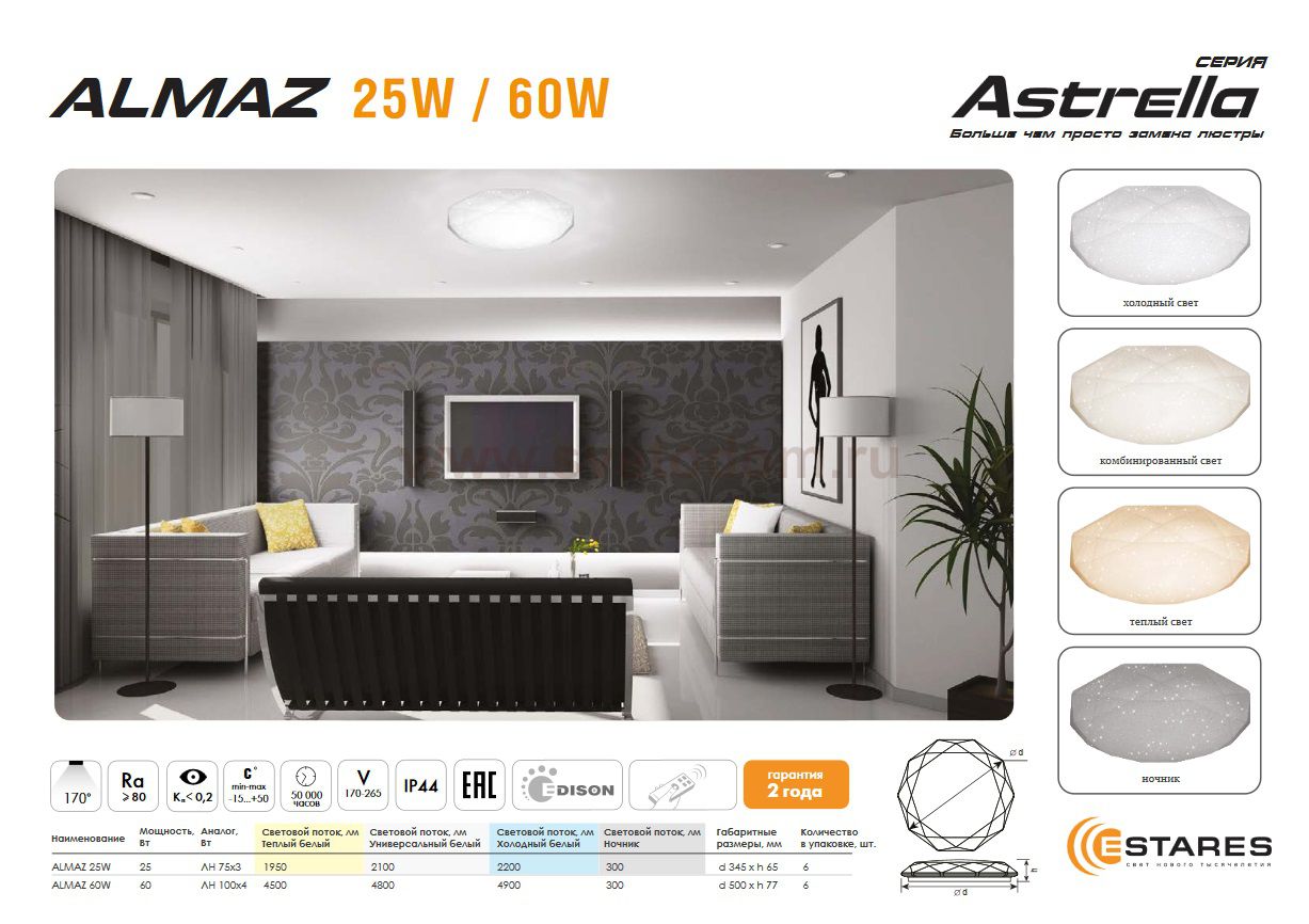 60W, 100-4900 lm, 3000-6000K, IP44, d550x77, ПДУ Отзывы Светильник светодиодный Estares Almaz 60W R-500-SHINYПока нет отзывов об этом товаре, напишите и он обязательно появится после модерации! Оставить свой отзывДругие товары магазина Фото