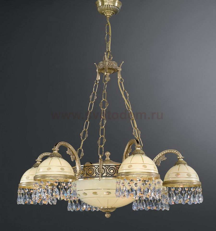 Классическая люстра производства итальянской фабрики Reccagni Angelo. Две лампы располагаются в центральном плафоне, остальные - по радиусу.