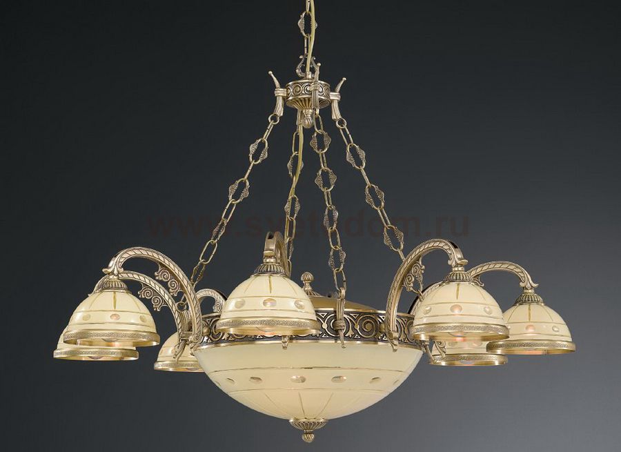 Классическая люстра производства итальянской фабрики Reccagni Angelo. Три лампы располагаются в центральном плафоне, остальные - по радиусу.