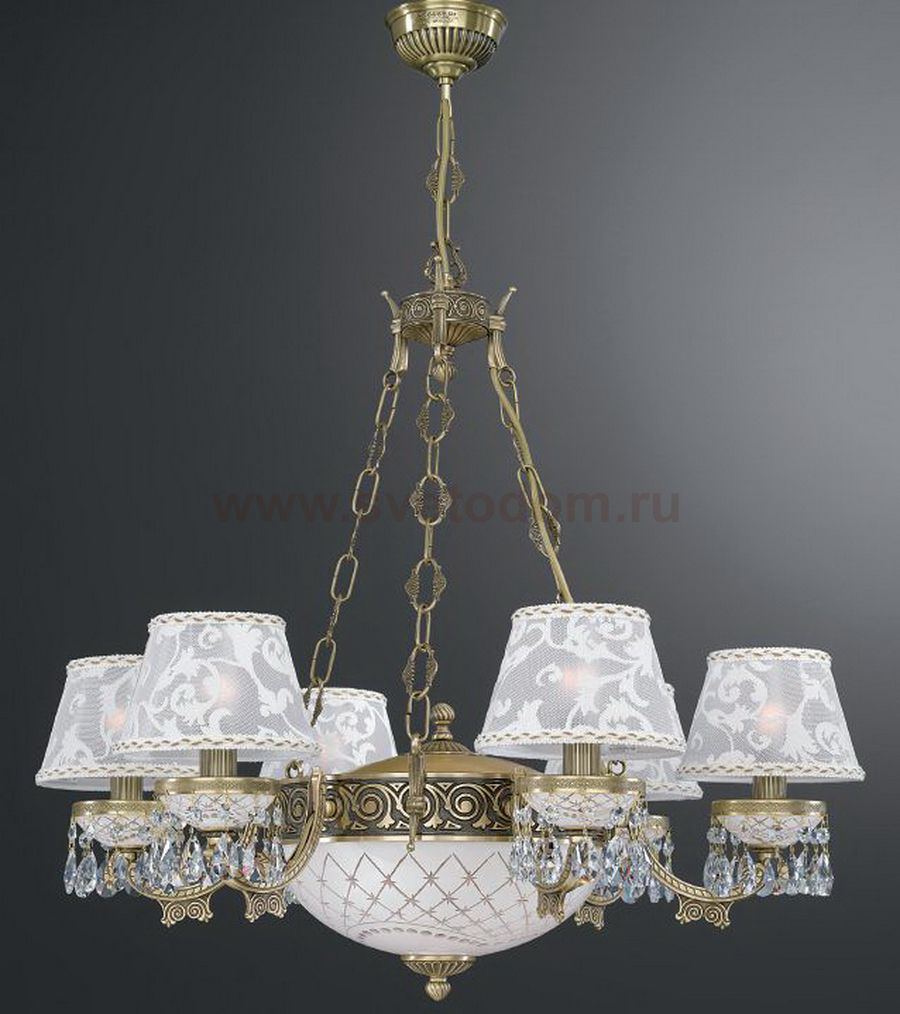 Классическая люстра производства итальянской фабрики Reccagni Angelo. Две лампы располагаются в центральном плафоне, остальные - по радиусу.