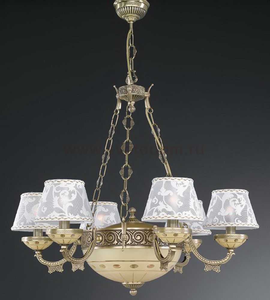 Классическая люстра производства итальянской фабрики Reccagni Angelo. Две лампы располагаются в центральном плафоне, остальные - по радиусу.