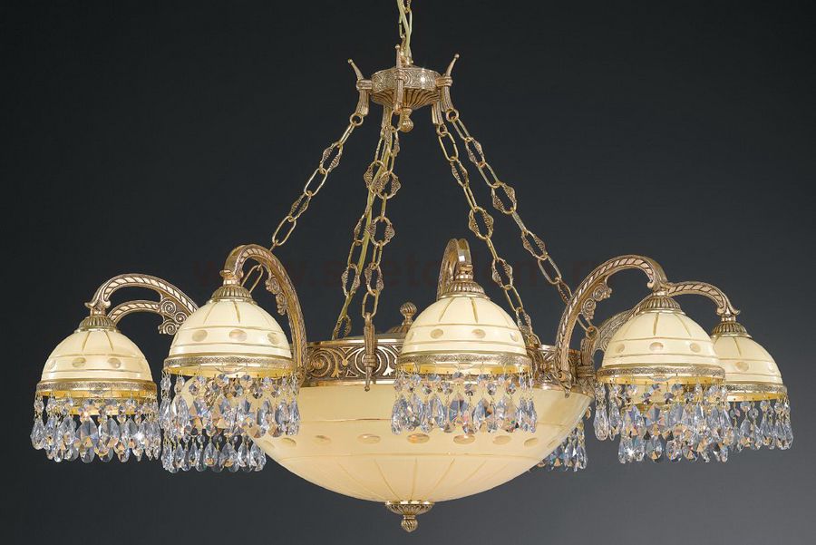 Классическая люстра производства итальянской фабрики Reccagni Angelo. Четыре лампы располагаются в центральном плафоне, остальные - по радиусу.