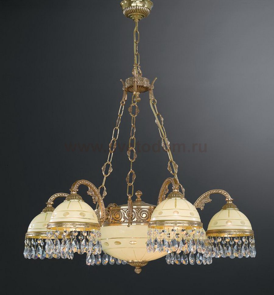 Классическая люстра производства итальянской фабрики Reccagni Angelo. Две лампы располагаются в центральном плафоне, остальные - по радиусу.