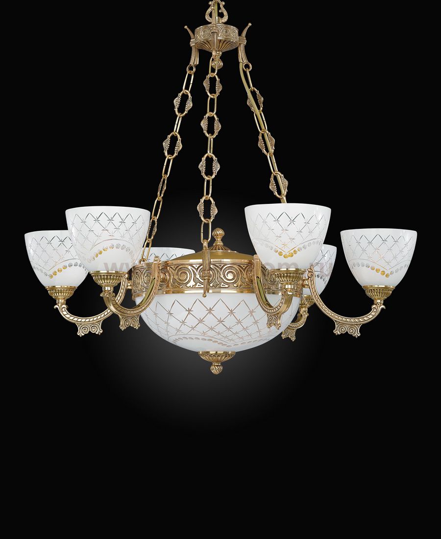 Классическая люстра производства итальянской фабрики Reccagni Angelo. Две лампы располагаются в центральном плафоне, остальные - по радиусу.
