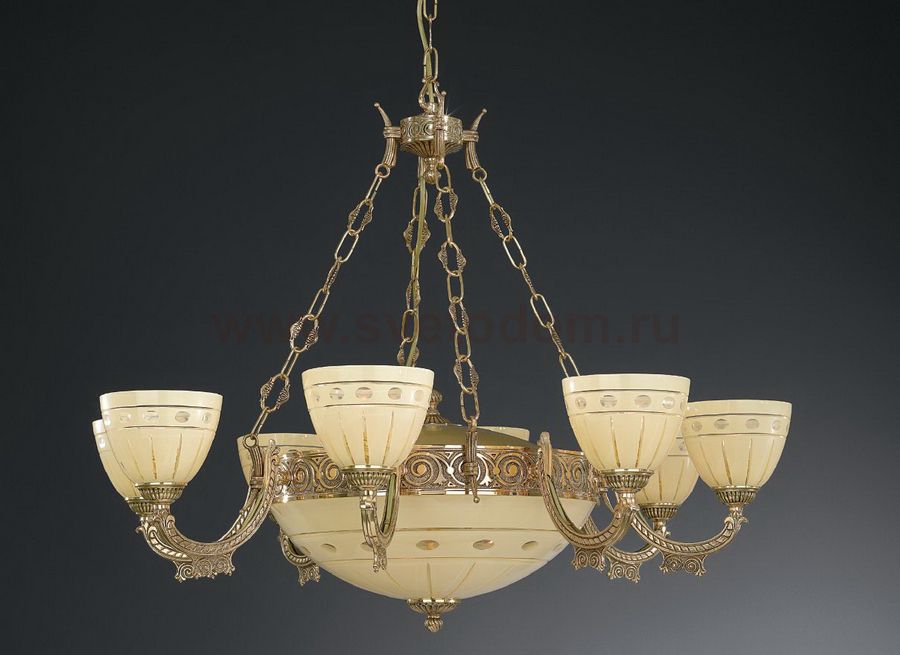 Классическая люстра производства итальянской фабрики Reccagni Angelo. Три лампы располагаются в центральном плафоне, остальные - по радиусу.