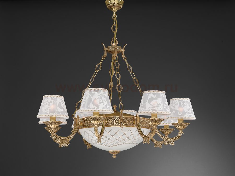 Классическая люстра производства итальянской фабрики Reccagni Angelo. Три лампы располагаются в центральном плафоне, остальные - по радиусу.