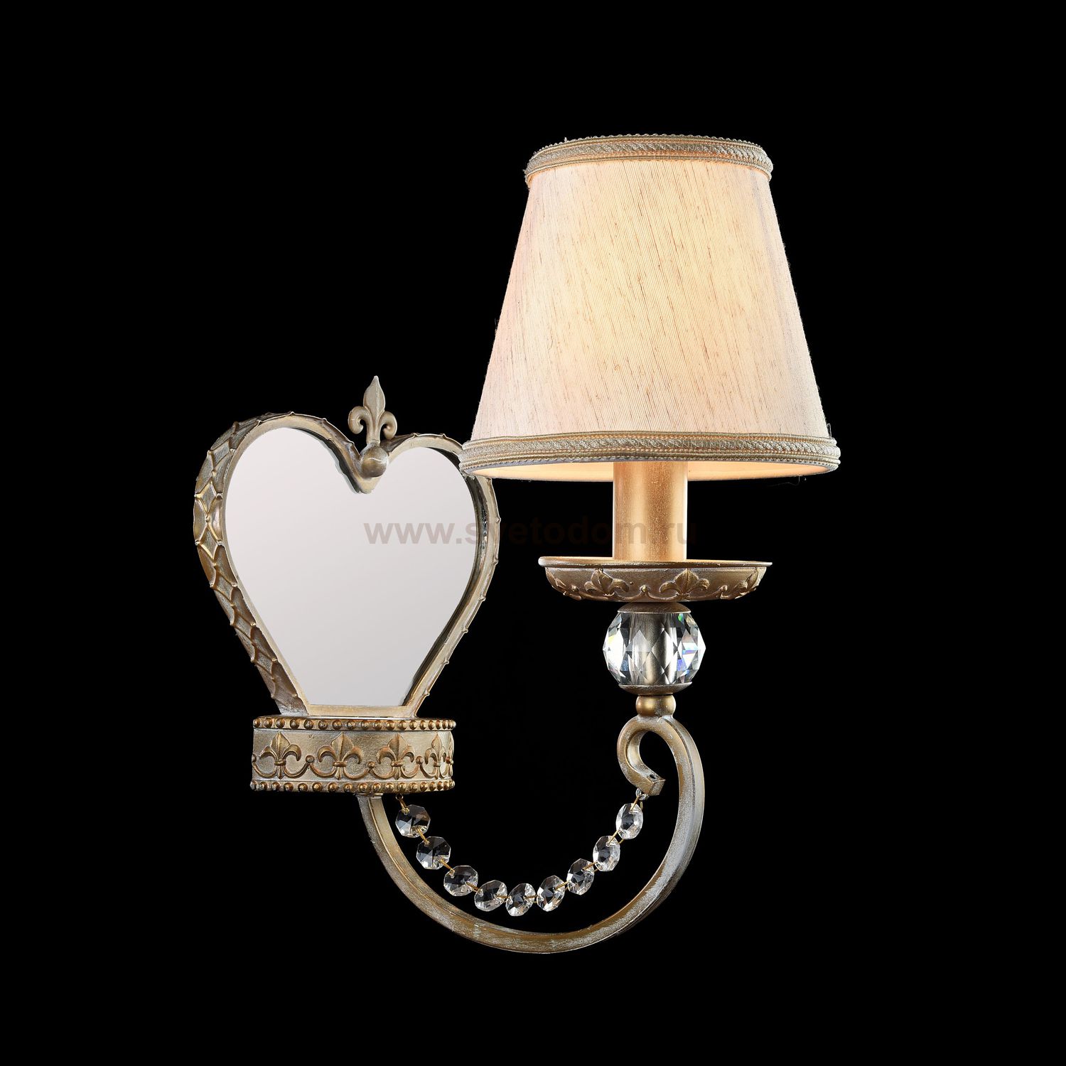 Особенности модели RC144-WL-01-WG: Арматура из металла. Декоративная «корона» с индивидуальным узором в основании светильника. Бра дополнено зеркалом. Абажур изо льна с натуральной кружевной тесьмой.