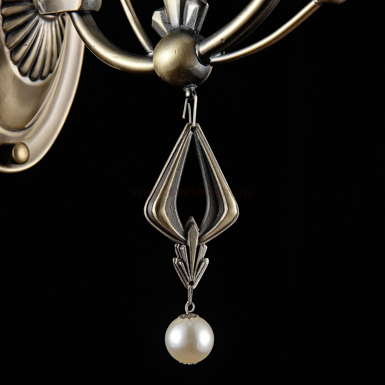 Арматура из металла. Декоративные элементы на рожках, подвески украшены искусственным жемчугом. Плафоны из матового стекла. Дополнительно