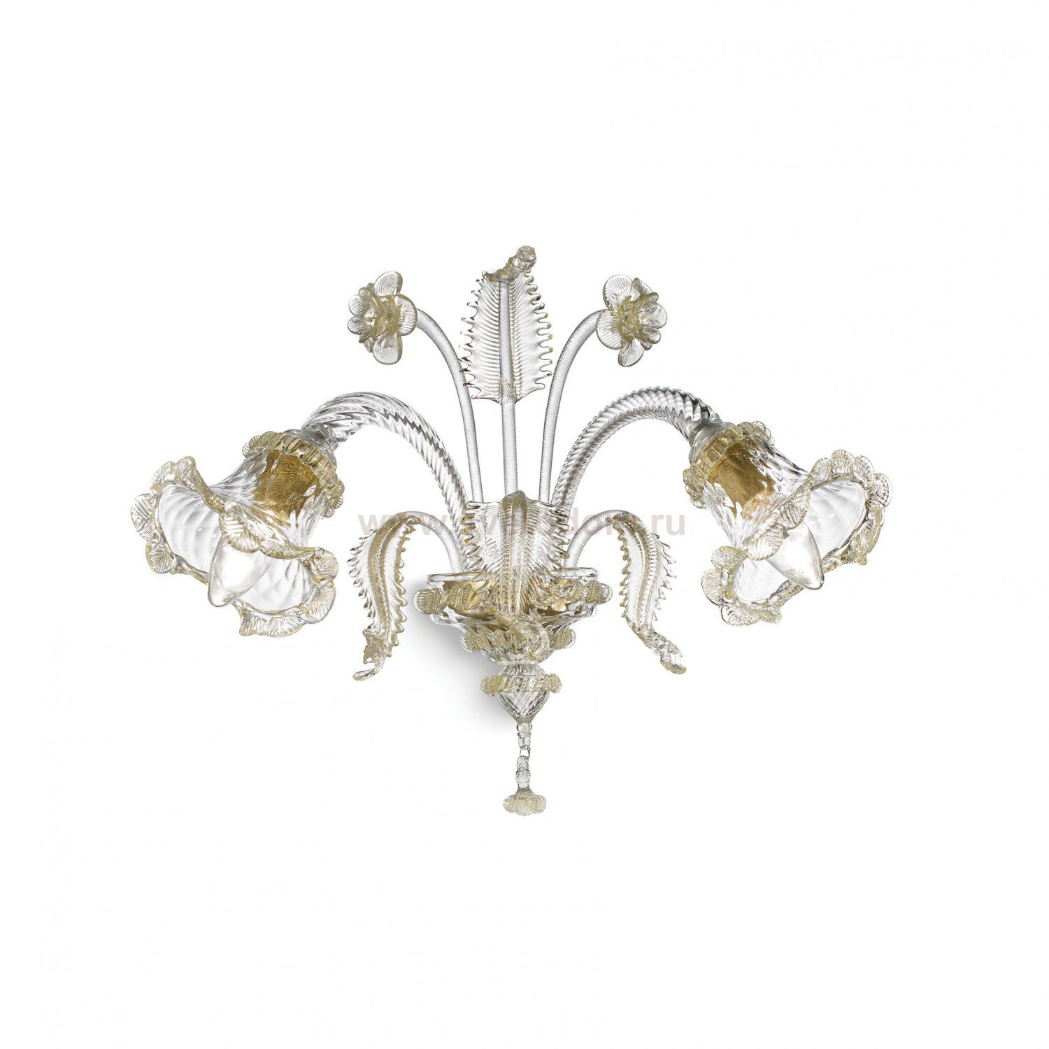 Светильник бра от известной итальянской фабрики Ideal lux из каталога Classico в венецианском стиле под артикулом RIALTO AP2 (7953) серии RIALTO имеет ряд отличительных характеристик: Люстра из прозрачного дутого стекла ручной работы отделана стеклянной пастой янтарного цвета. Внутренняя чаша из металла латунного покрытия.