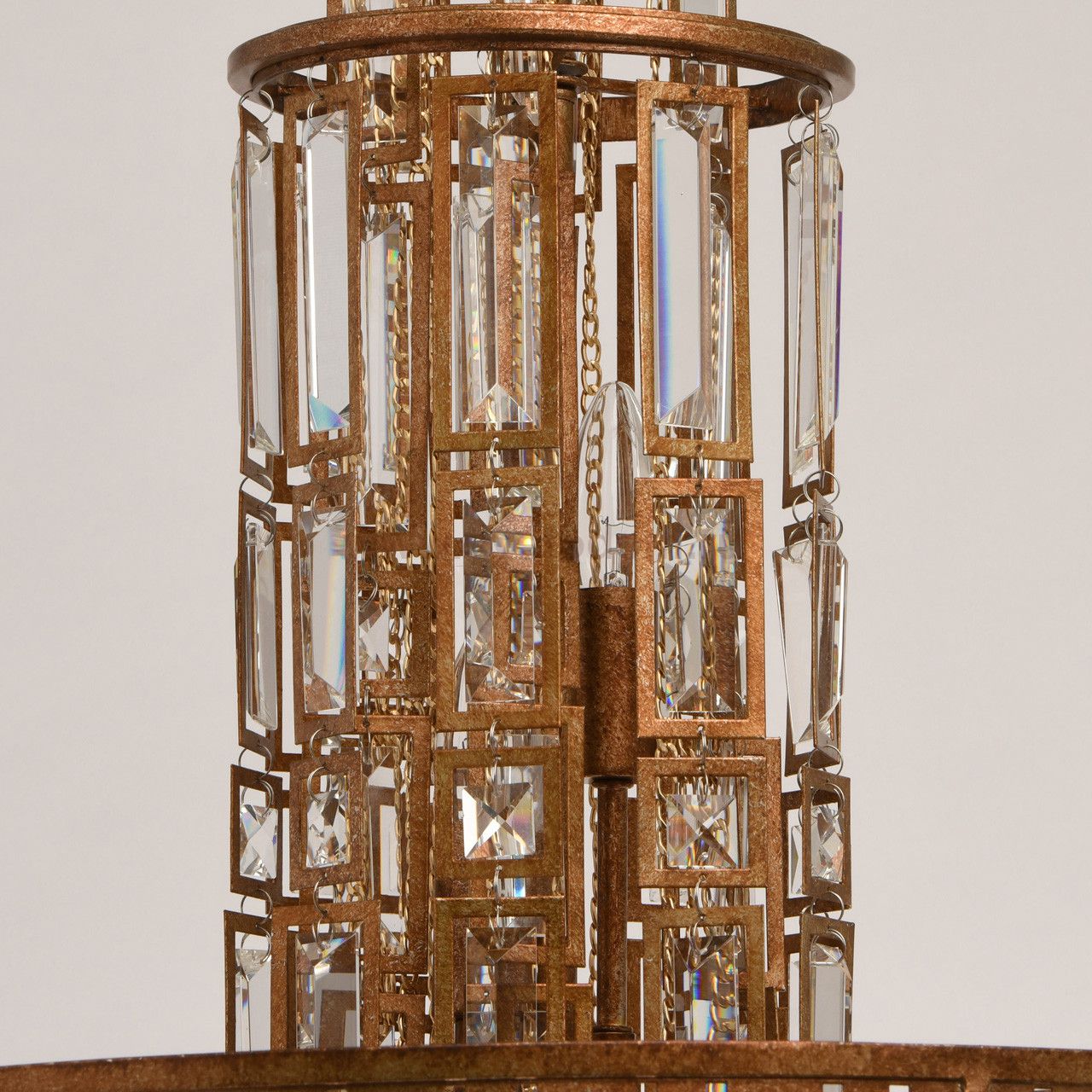 Традиционный узор Марокко выполнен в цвете коньячного дуба с эффектом благородной ржавчины. Ориентальная тональность коллекции станет находкой для ценителей этно, арт-деко, обладающих помещениями Loft и лаунж. Ручная технология окрашивания и крупный хрусталь при свете каждый раз будет преображаться по-разному, что добавляет исключительной привлекательности владельцу. Возможности крепления позволяют регулировать высоту подвеса к потолку. Сильные источники света сконцентрированы в центре светильника, широко отдавая рассеянный свет вовне.