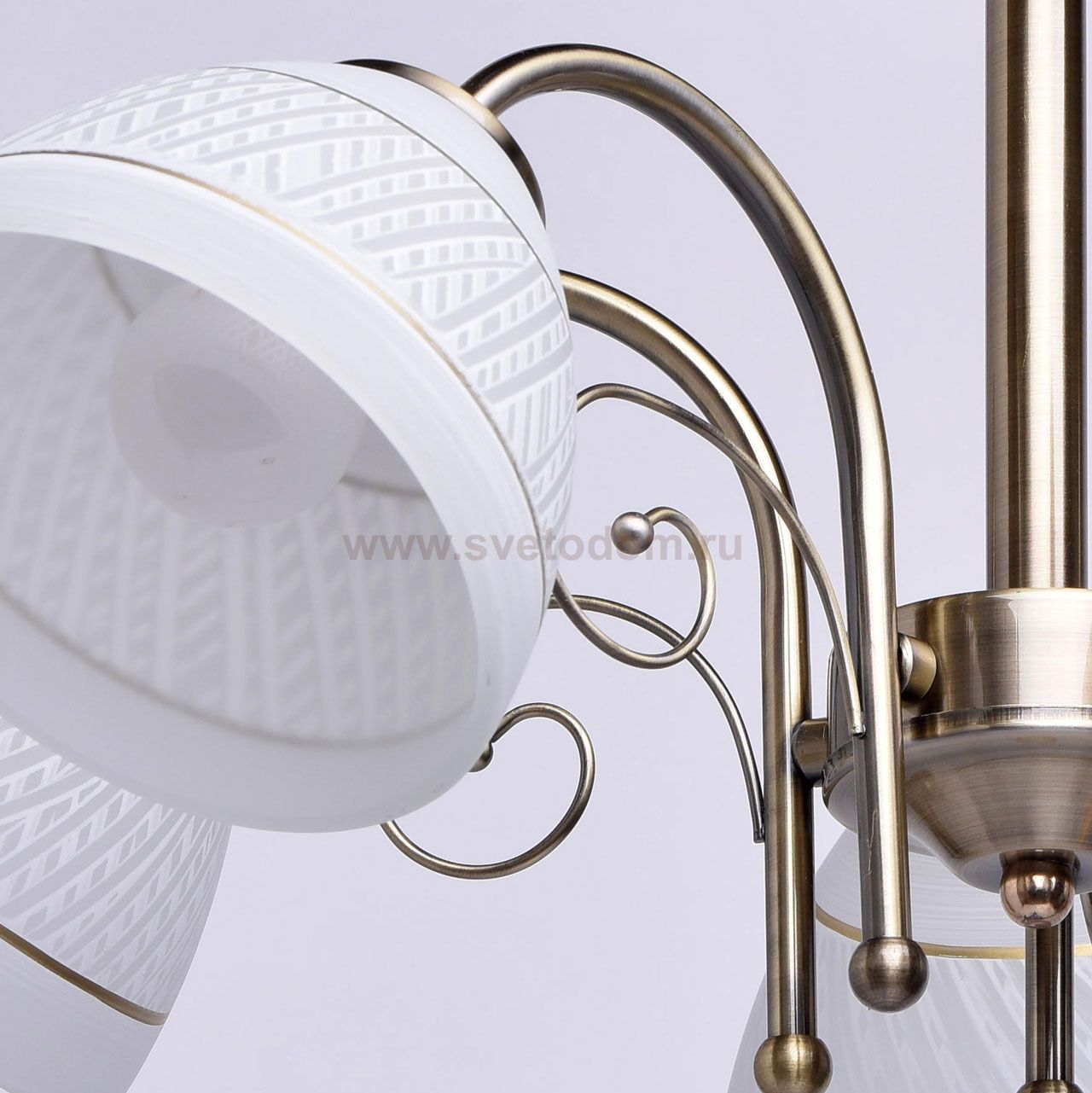 Описание модели 347018405: Люстра из коллекции «Фелиция», без лишних деталей, декорирована в классическом стиле, хорошо впишется в любой интерьер. Основание из металла цвета античной бронзы удачно подчеркнуто металлизированной каймой на молочно-белых плафонах. Открытые к низу, они украшены орнаментальным рисунком. Современный дизайн с элементами античного стиля, высокие параметры освещенности делают эту люстру по-настоящему универсальной.