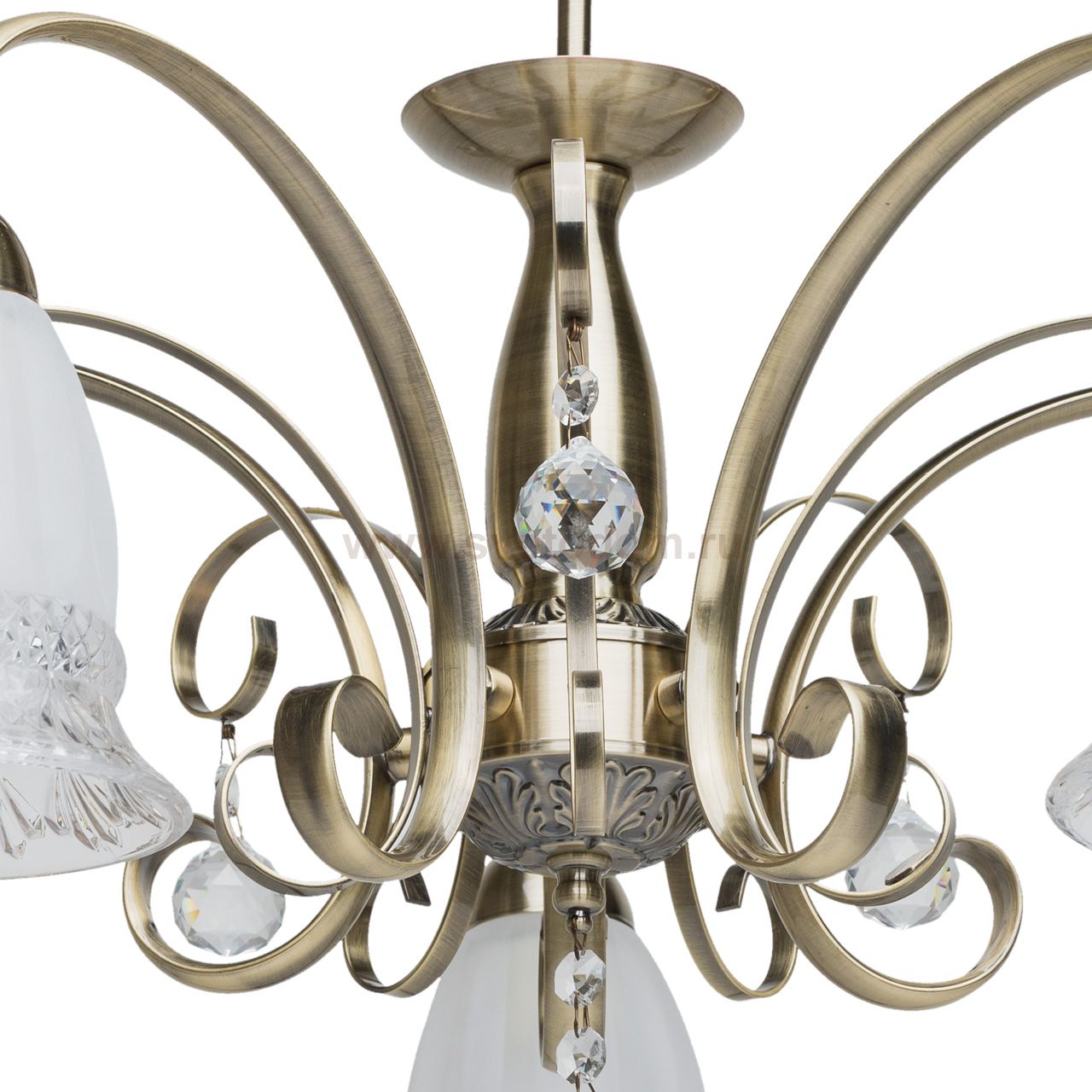 Описание модели 372011405: Сочетание классического стиля и современных деталей создают особый индивидуальный облик люстры из коллекции «Моника». Металлическое основание цвета благородной античной бронзы. Плафоны интересной формы из стекла белого оттенка с комбинацией прозрачного стекла с алмазной гранью. Светильник украшают хрустальные декоративные элементы в форме капель, что придает дополнительную нарядность и торжественность. Стилизованный под старину, этот светильник станет удачным украшением практически любого интерьера, добавит нотку классики в современный интерьер, придаст соверменности строгому классическому стилю. Площадь освещения порядка 15 кв.м.