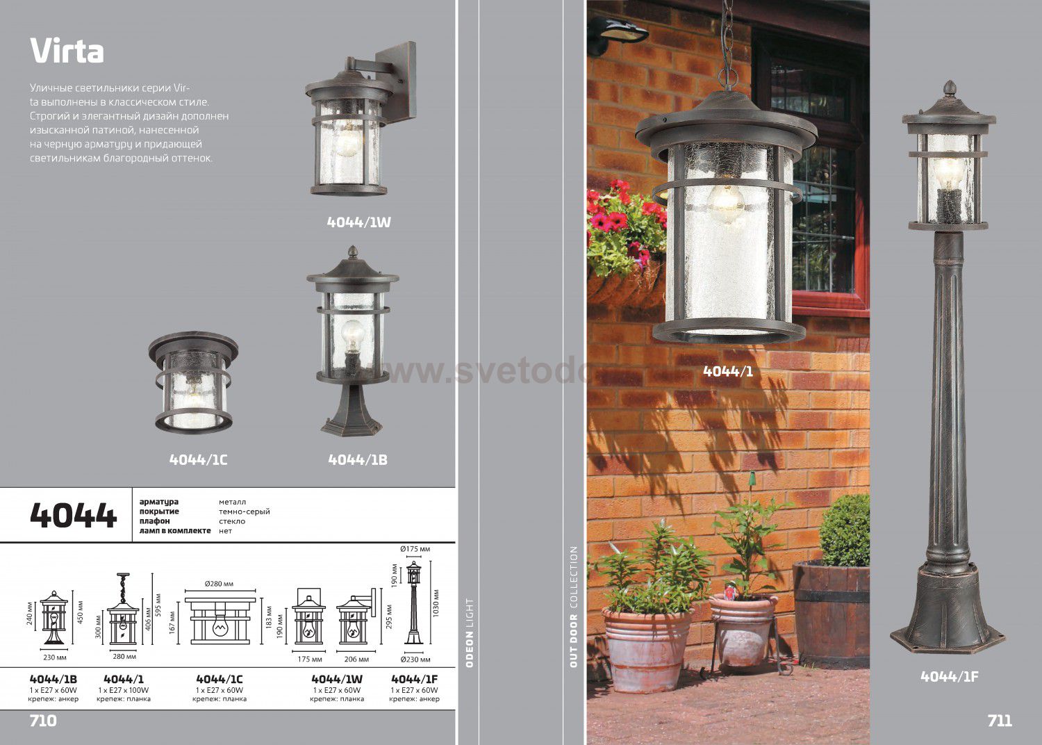 Уличный настенный светильник 4044/1W линии Virta выполнен в классическом стиле. Строгий и элегантный дизайн дополнен изысканной патиной, нанесенной на черную арматуру и придающей светильнику благородный оттенок. Стеклянный плафон с эффектом морозного потрескивания украсит стильный экстерьер загородного дома и подарит необычный, уютный свет. Цоколь E27. Мощность 1*60W. Нет ламп в комплекте.