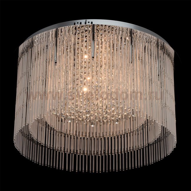 Металлическое основание цвета хрома, декоративный абажур из стеклянных матированных подвесок, прозрачный хрусталь. Материал плафона