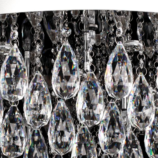 Металлическое основание цвета хрома, декоративные подвески из прозрачного хрусталя. Материал декора