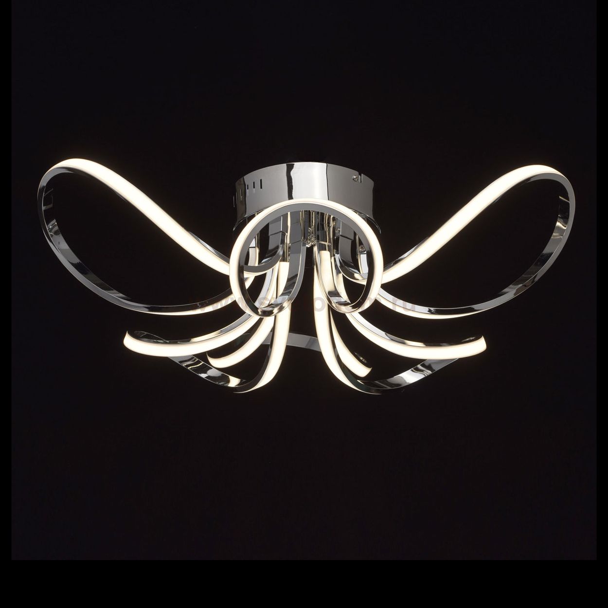 Основание: потолочная чаша светильника выполнена из металла и гальванизирована в цвет хрома. Рожки выполнены из сплава алюминия, гальванизированы в цвет хрома. Светодиодные источники света типа SMD-Stripе закрыты белым матовым акрилом. Комментарий