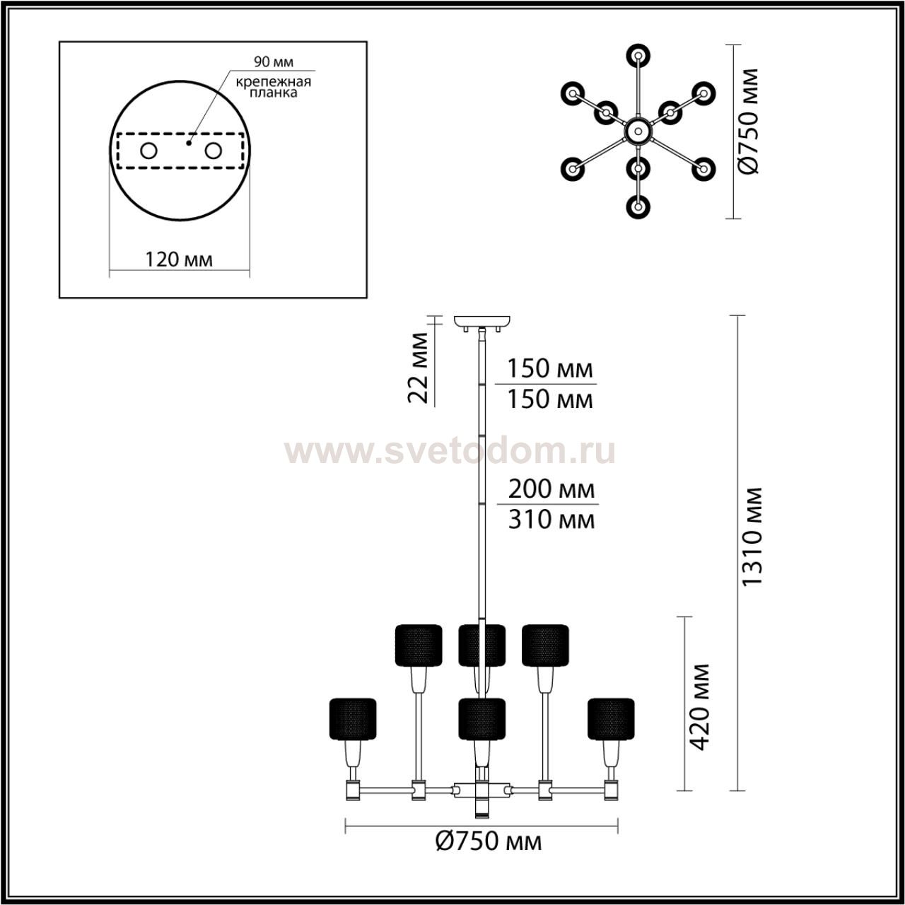 4975/9 LOFT ODL22 475 черный/мат.золотой/металл.сетка Люстра E14 9*40W LECOLA Штрих-код