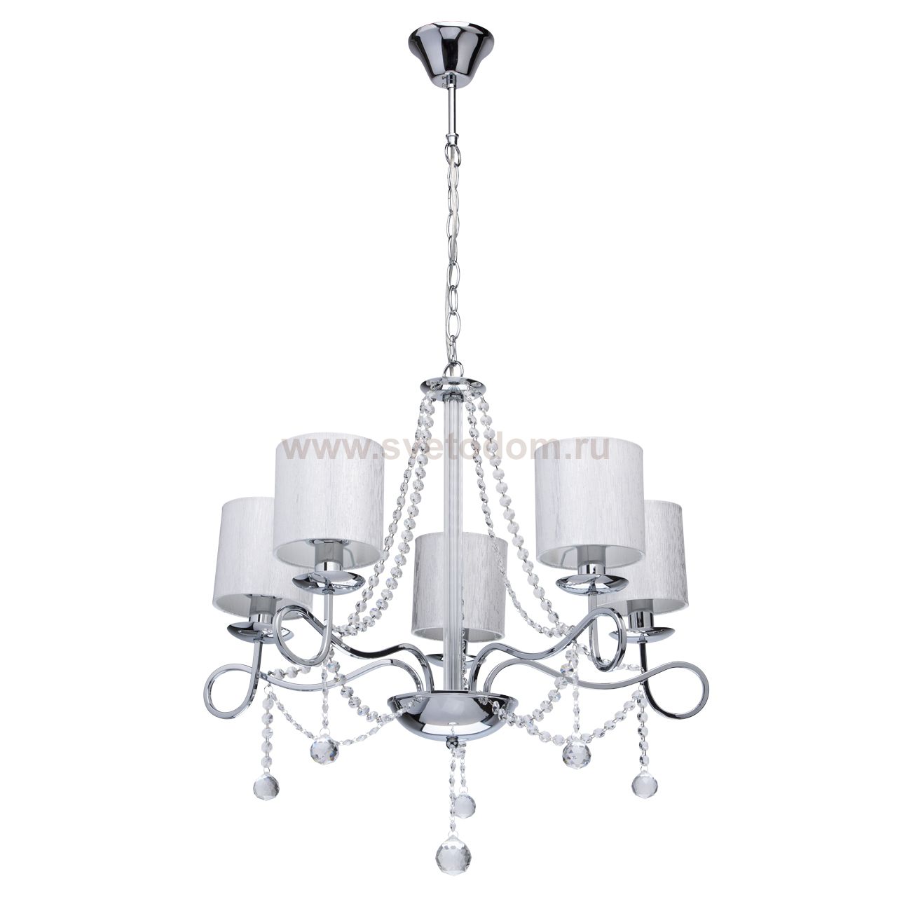 Люстра из коллекции «Федерика» очаровывает своей изящной красотой. Хромированное металлическое основание дополнено оригинальными витыми рожками того же оттенка. Тканевые абажуры выполнены из парчи серебряного цвета, их нежный тон наполнит обстановку гармонией и легкостью. Продуманный элегантный декор центральной части светильника выполнен из прозрачного стекла, а ниспадающие хрустальные подвесы придают композиции ещё большую воздушность и легкость. Эффектные сочетания делают люстру достойной самых изысканных интерьеров.
