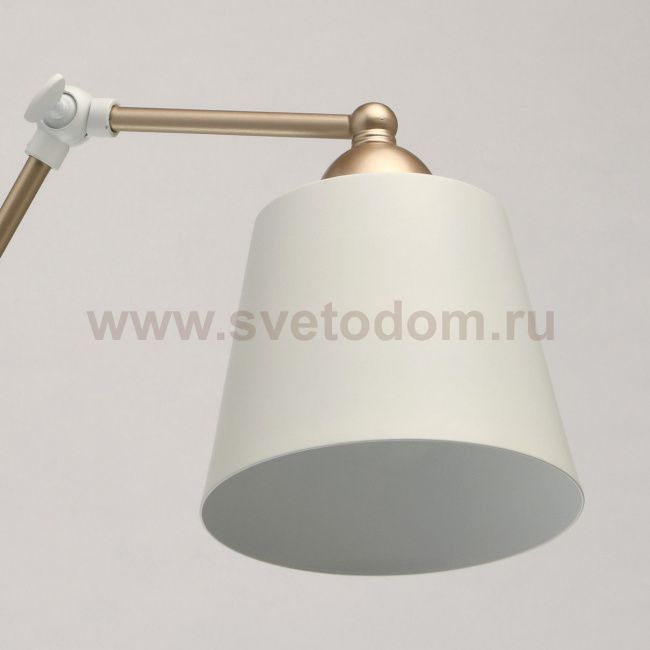 Основание светильника выполнено из металла и окрашено в белый и золотой цвет.